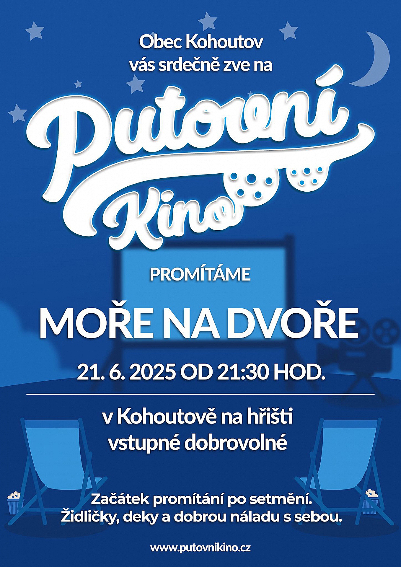 Projekce se uskuteční v sobotu 21. června 2025 na hřišti v Kohoutově.