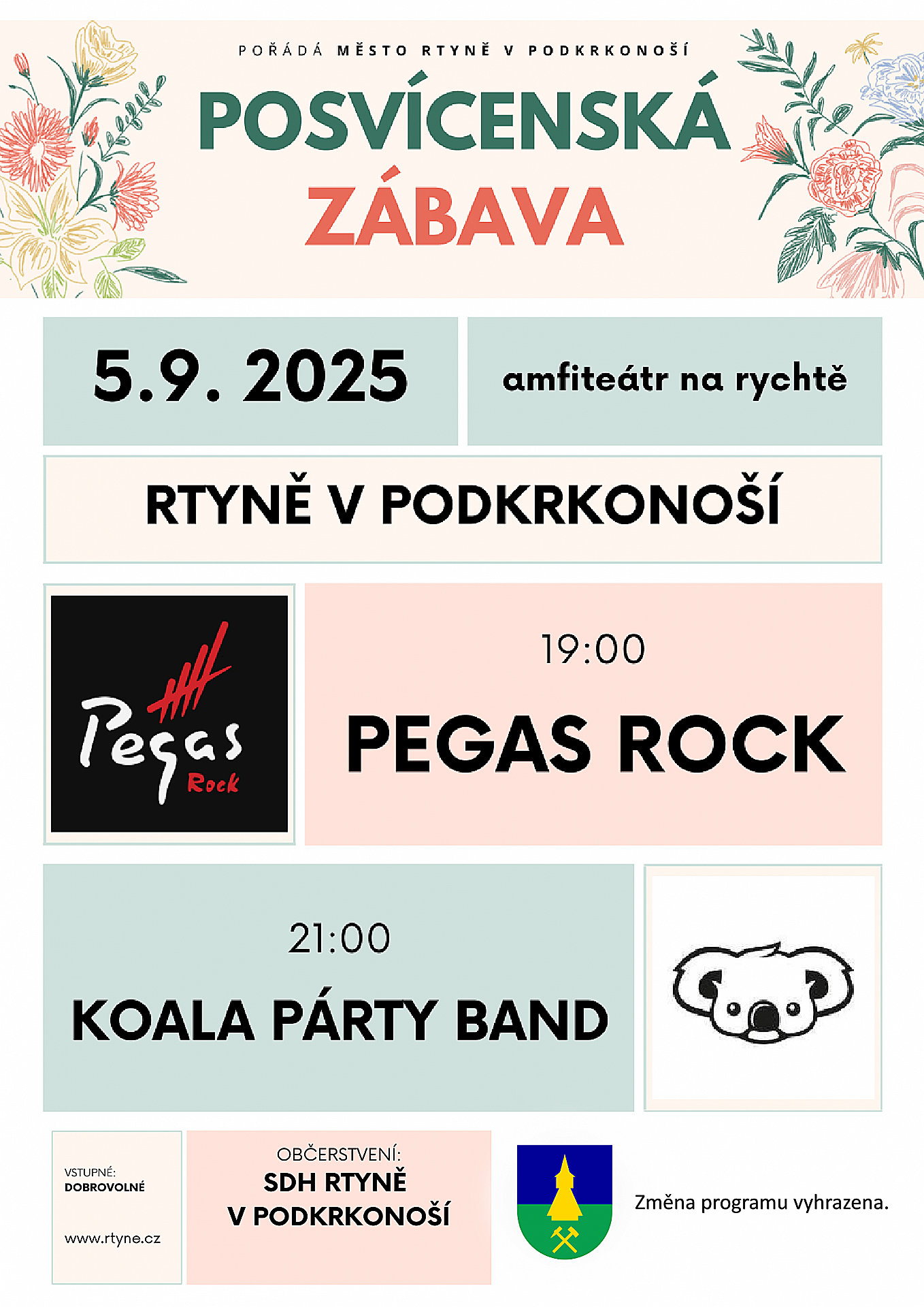 Na pódiu se postupně představí Pegas rock s rockovými klasikami a poté rozproudí náladu KOALA párty band, co vás roztančí a zahraje hity pro všechny generace.