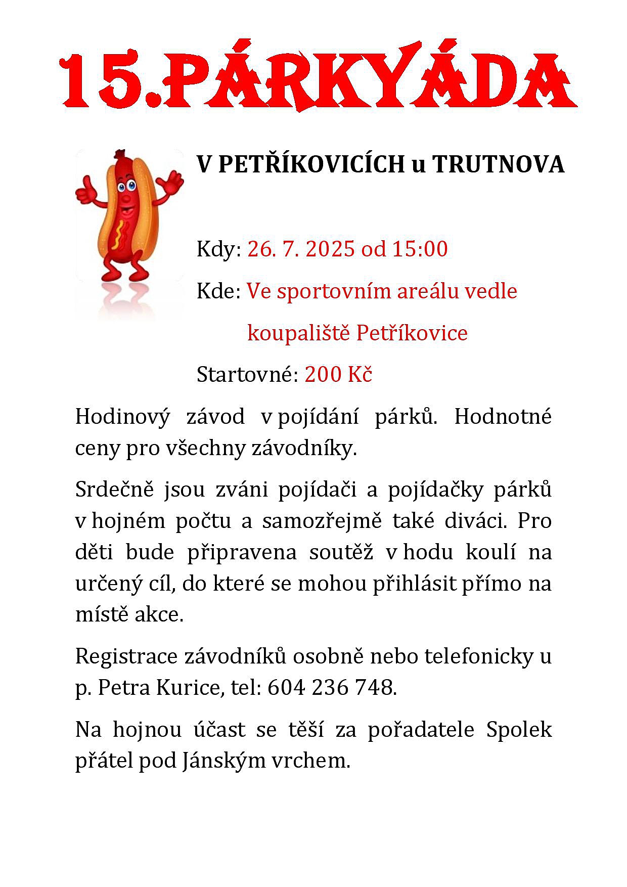 Pozvánka pro všechny pojídače i pojídačky párků – čím více, tím lépe! A samozřejmě také diváky, kteří vytvoří tu pravou atmosféru.
