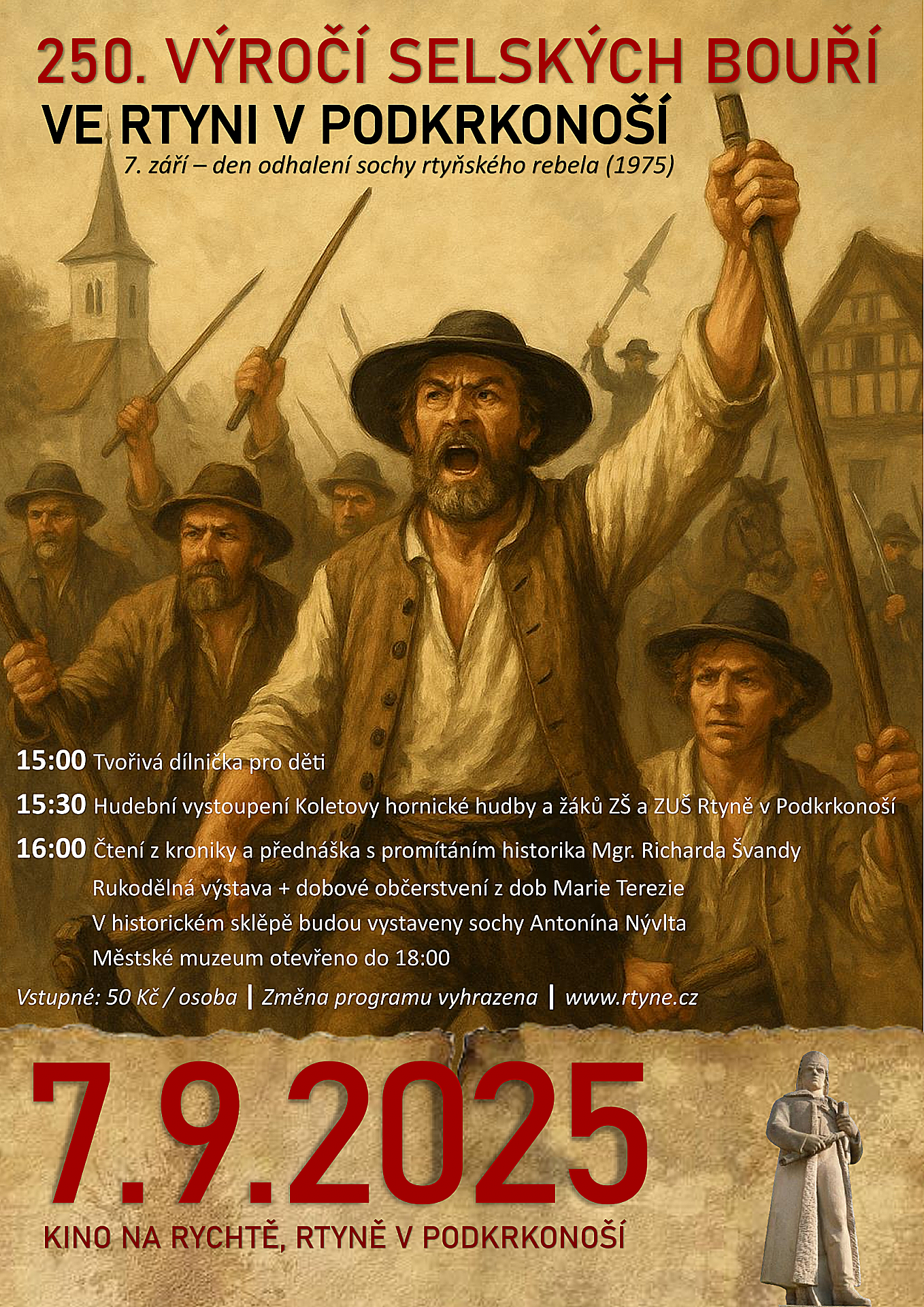 Město Rtyně v Podkrkonoší srdečně zve všechny občany i návštěvníky k důstojnému připomenutí významného milníku našich dějin – 250. výročí selského povstání z roku 1775.