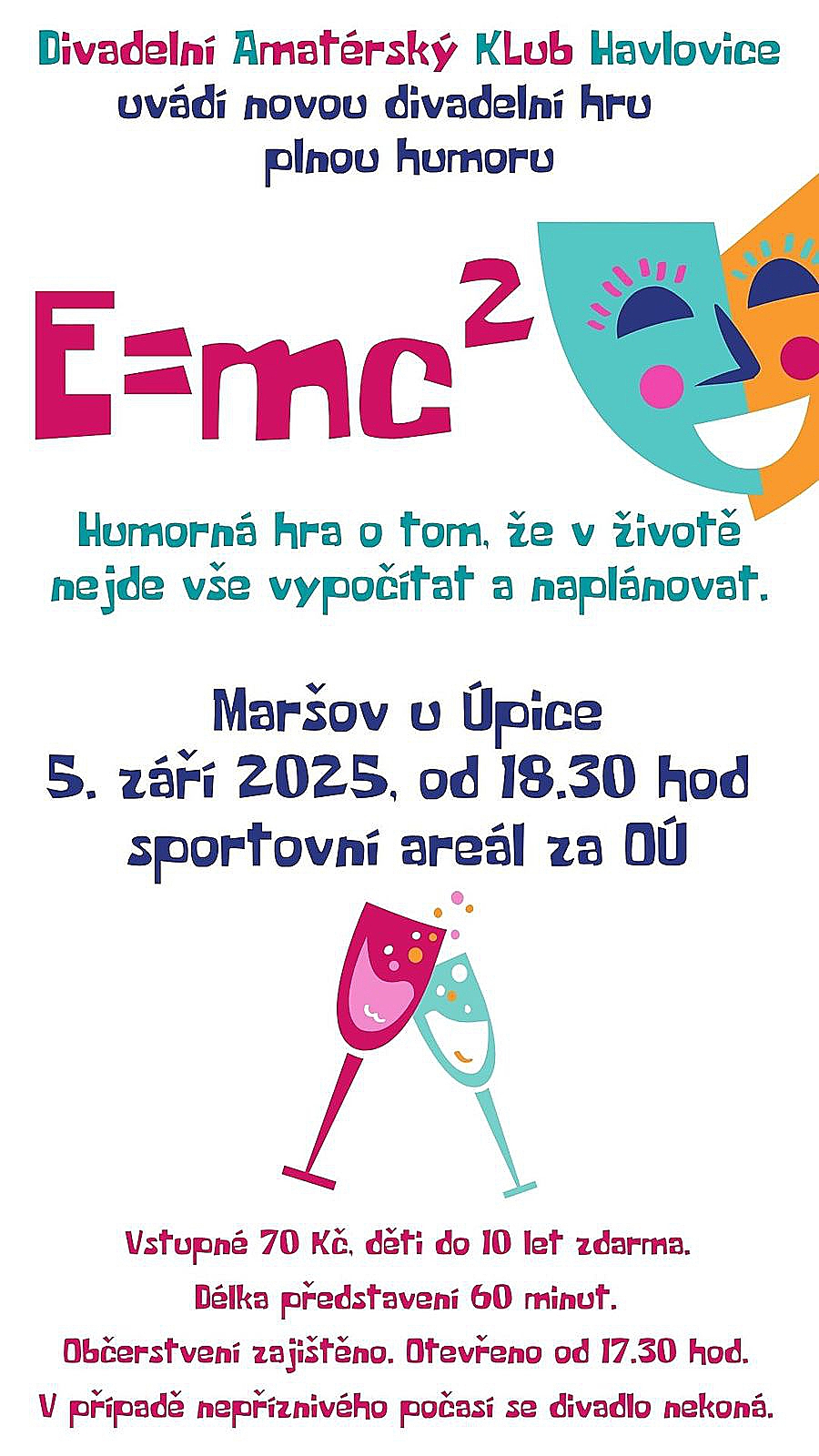 Představení začne v 18:30 ve sportovním areálu v Maršově u Úpice, posezení bude otevřeno od 17:30 hod.