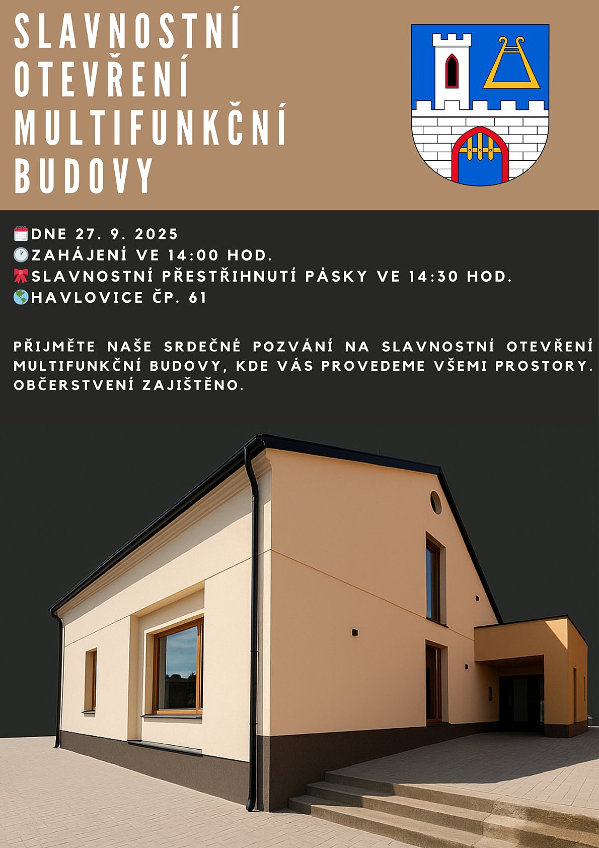 V Havlovicích v sobotu 27. září 2025 od 14 hodin slavnostně otevřou novou multifunkční budovu.