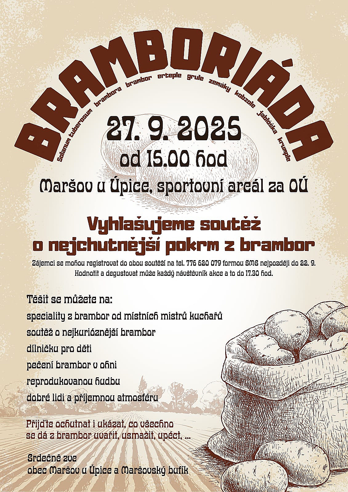 Přijďte do Maršova u Úpice užít si podzimní den plný chutí, zábavy a bramborových radostí!