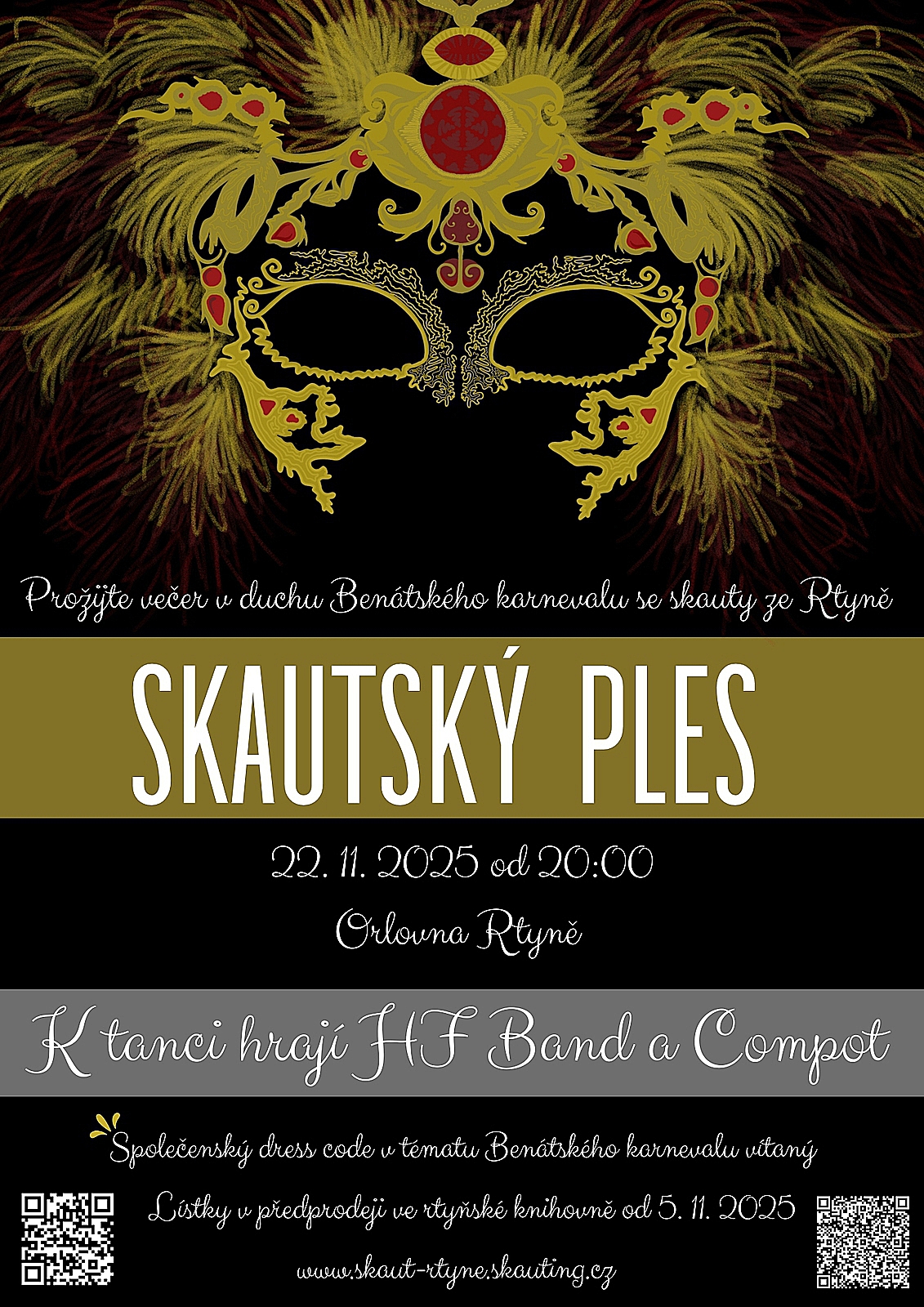 Skauti z Havlovic a Rtyně vás srdečně zvou na Skautský ples, který se uskuteční v sobotu 22. 11. 2025 od 20:00 hodin v Orlovně ve Rtyni.