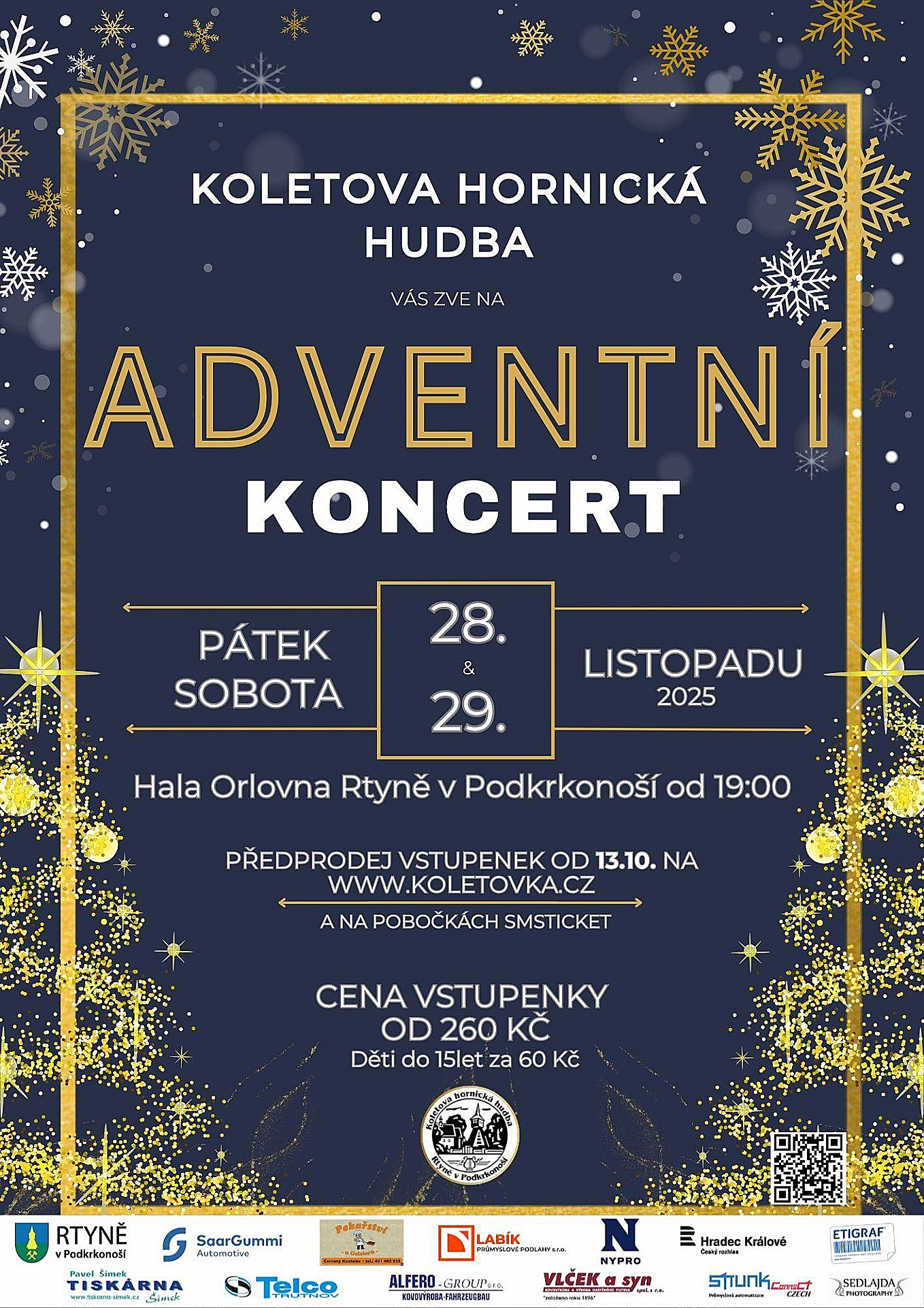 Nenechte si ujít sváteční koncerty, které proběhnou o prvním adventním víkendu, v pátek 28. a v sobotu 29. listopadu 2025.