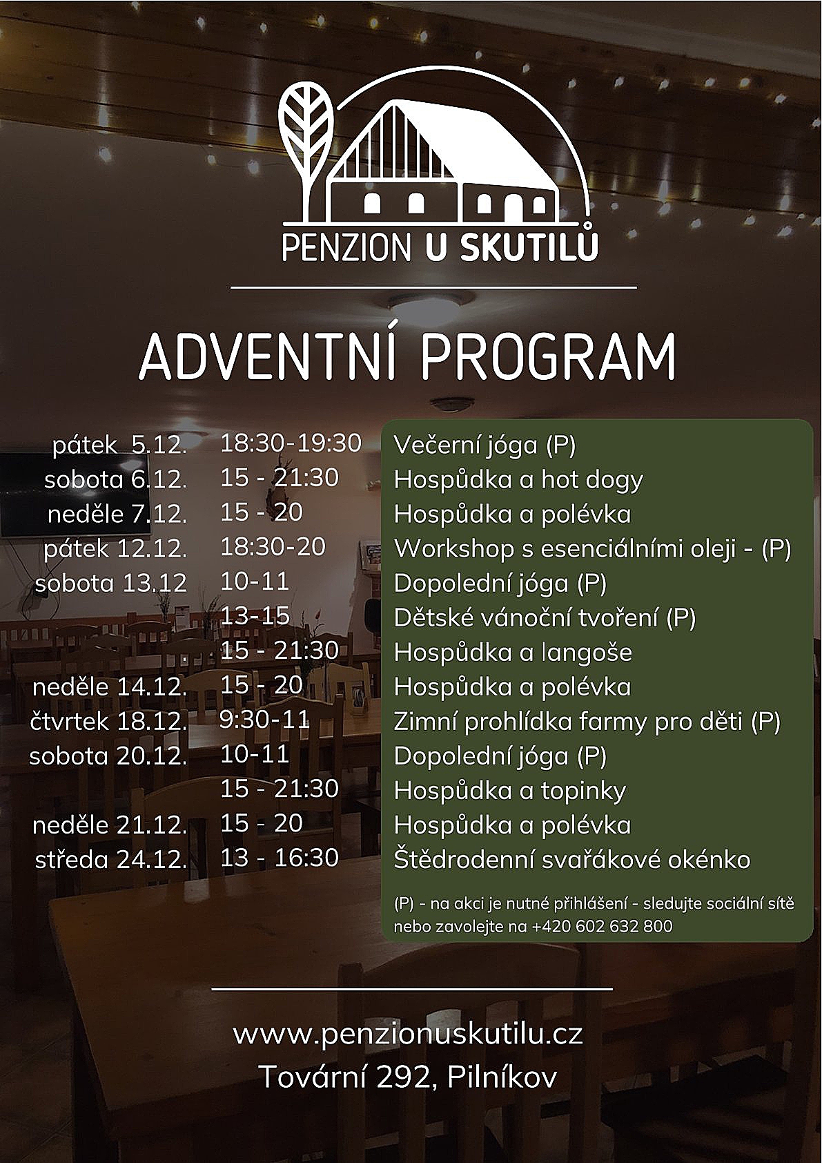 Adventní setkání a předvánoční akce v Penzionu U Skutilů