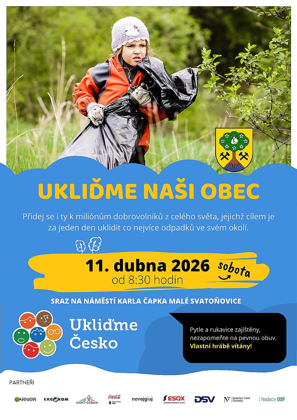 Společně uklidíme okolí, přírodu i veřejná prostranství a uděláme naše okolí zase o něco hezčí.