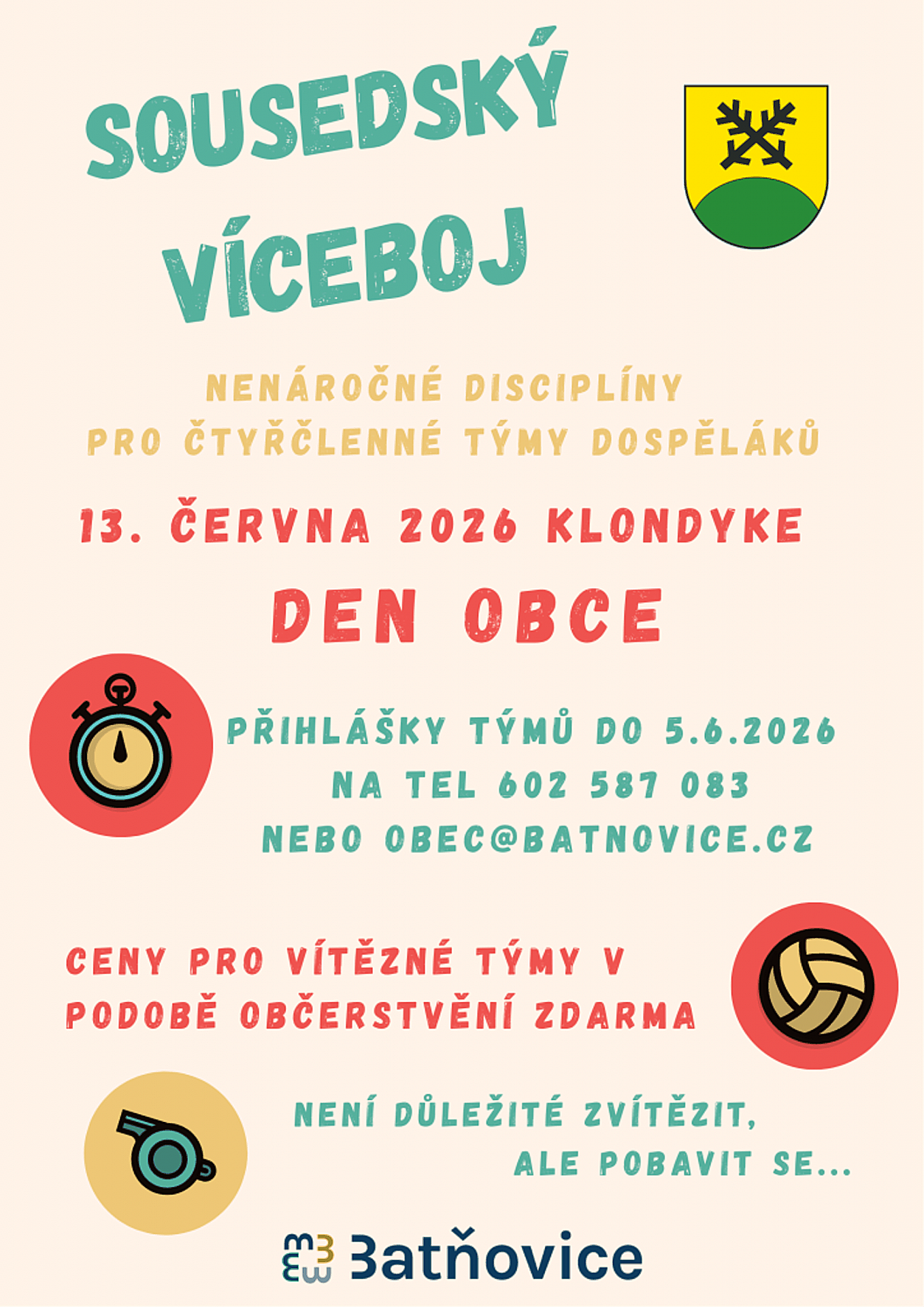Více info na tel. čísle 602 587 083 nebo na e-mailu obec@batnovice.cz.