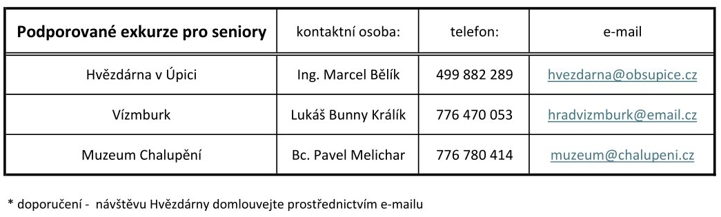 Nabídka institucí pro akce zaměřené na seniory