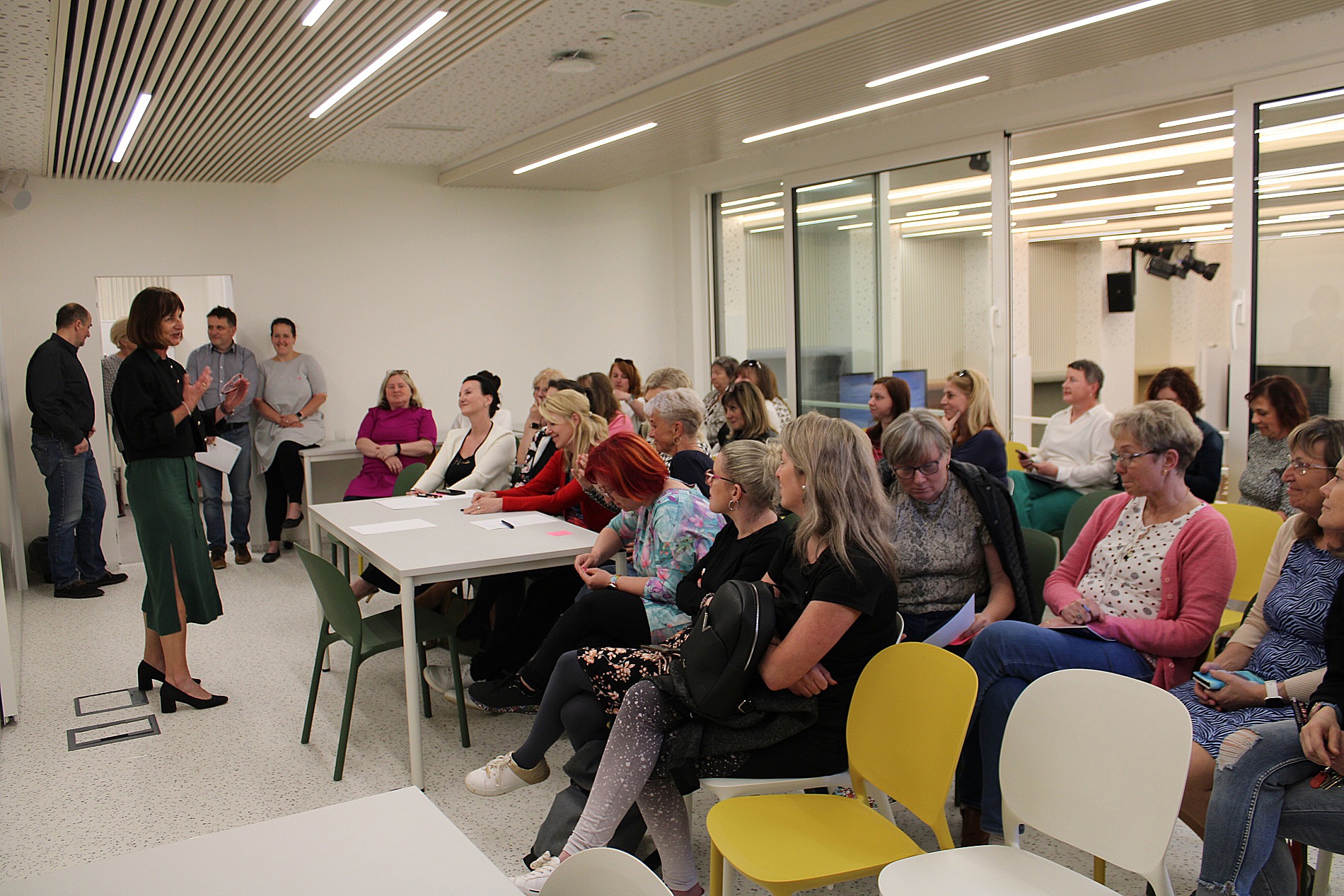 V druhé části setkání se 38 účastnic rozdělilo do několika skupin, v nichž sumarizovaly své osvědčené postupy a také diskutovaly o tom, co potřebuje dítě pro snadnější a plynulejší přechod na základní školu. Při následném společném vyhodnocení například zaznělo, že je dobré pořádat informační schůzky rodičů s účastí zástupců MŠ i ZŠ. Zklidní se tím obavy ze zápisu a sjednotí očekávání. „Je důležité, abychom se jako pedagogové napříč školami navzájem inspirovali a diskutovali o tom, co funguje a kde naopak vidíme prostor ke zlepšení,“ uvedla jedna z účastnic. Podobné názory zaznívaly během celého setkání, které bylo velmi přínosné a podnětné.