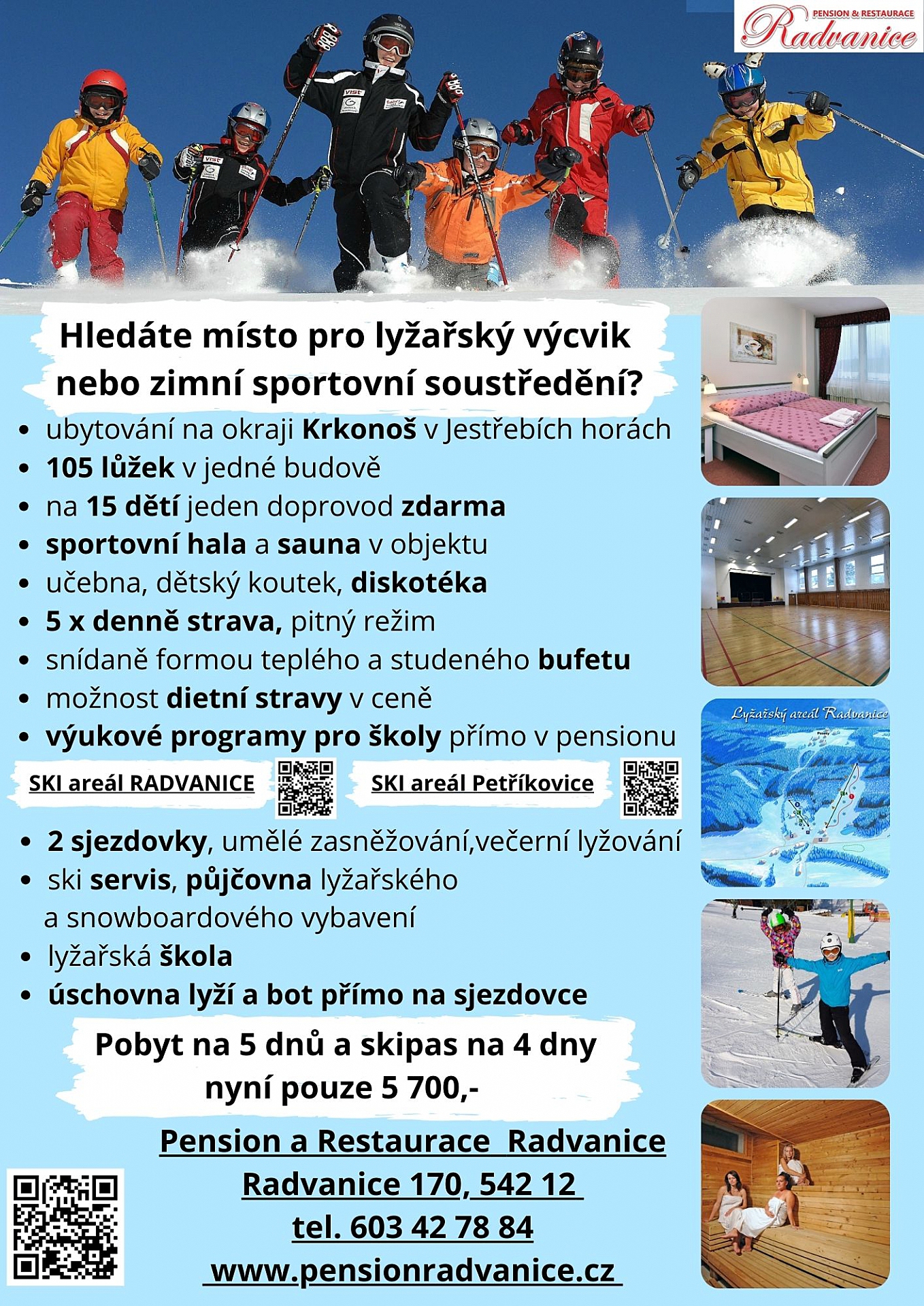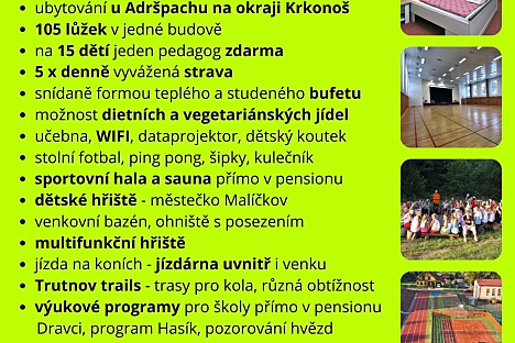 Převážná část programu bude probíhat v Pensionu Radvanice, který má školám rozhodně co nabídnout – bližší informace jsou na přiložených prospektech.