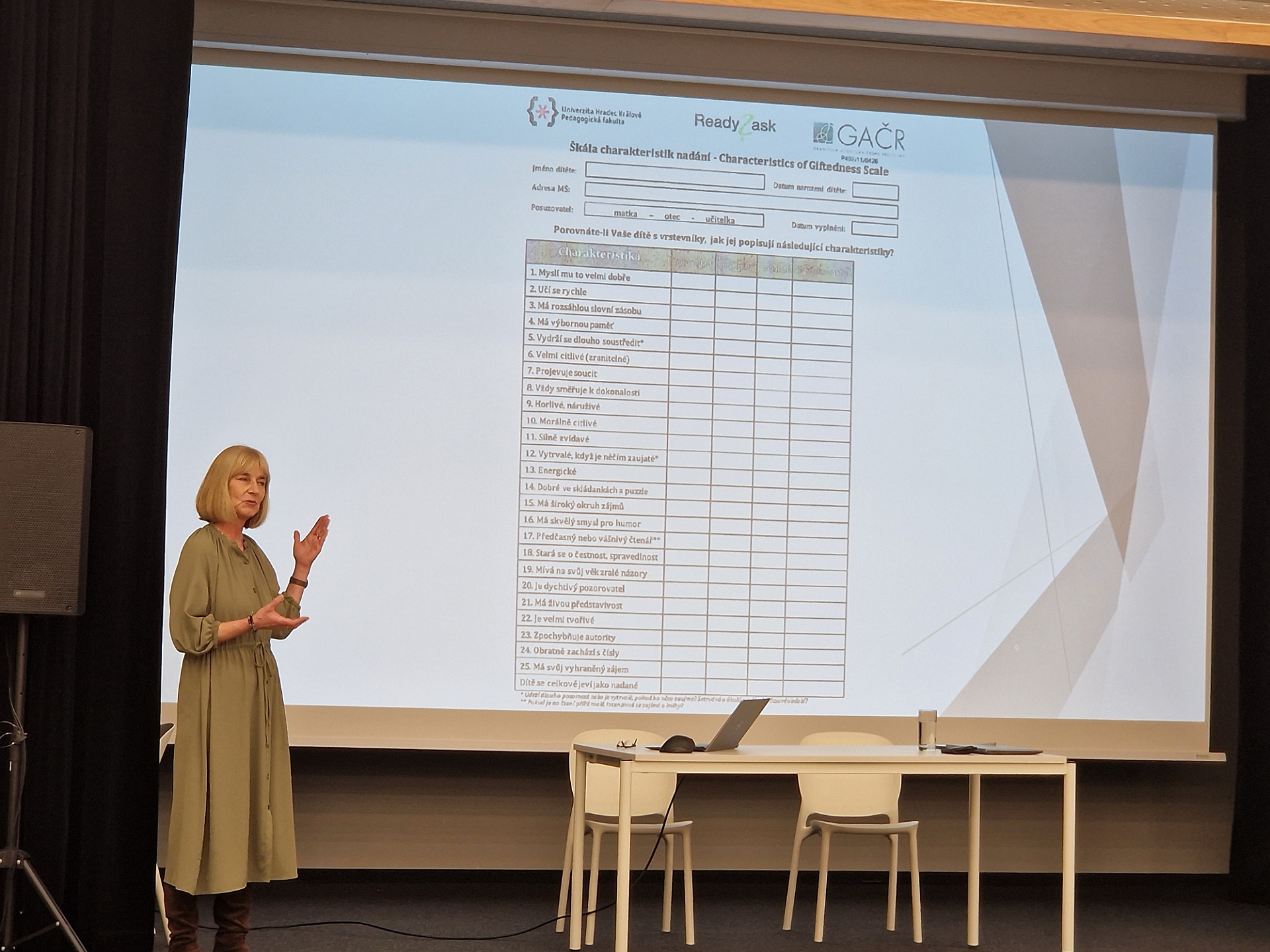 Na trutnovském setkání byla řeč rovněž o dotazníku s názvem Škála charakteristik nadání. „V rámci tohoto dotazníku hodnotí své dítě každý rodič zvláště. Pokud zde dítě získá více než 75 bodů, je třeba se zabývat tím, zda se jedná o nadání,“ vysvětlila Vladimíra Priputenová. Diskuse se dále zaměřila na specifické potřeby nadaných dětí. Vedle rozvoje jejich schopností je důležité myslet také na sociální a emoční stránku. Nadané děti mohou někdy zažívat pocit nepochopení nebo nudy ve výuce, pokud nejsou dostatečně podněcovány. Pedagogové proto sdíleli zkušenosti s obohacováním výuky, diferenciací úkolů nebo zapojováním projektové výuky, která umožňuje dětem více rozvíjet jejich zájmy.