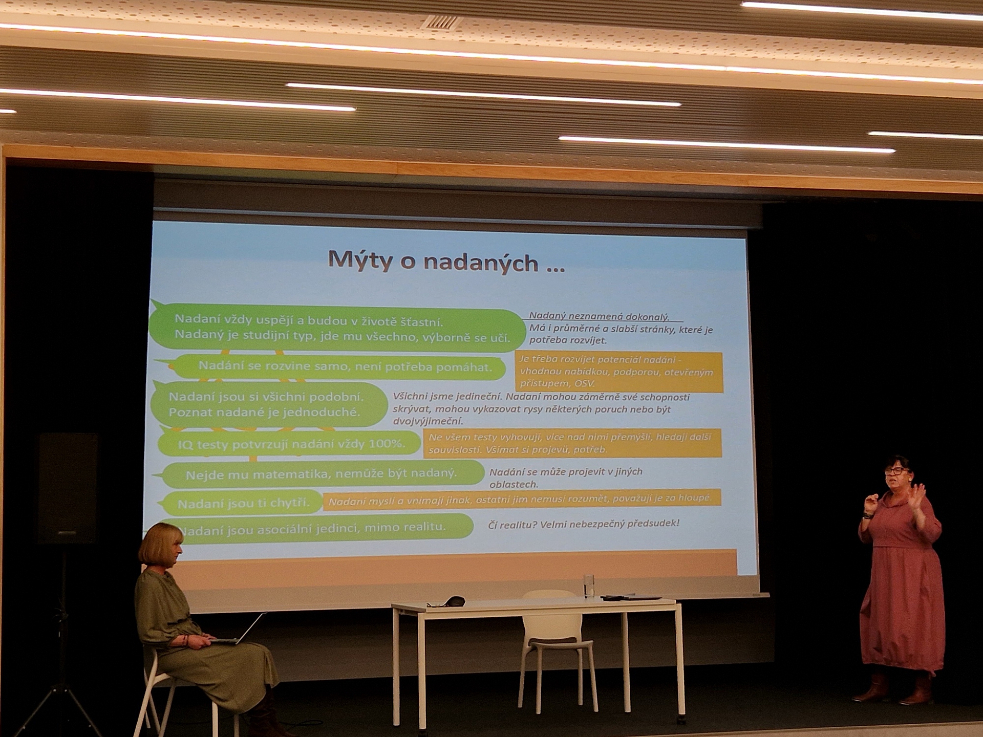 Účastníci se shodli na tom, že včasné rozpoznání nadání je velmi důležité. Právě mateřské školy mohou sehrát klíčovou roli při prvním zachycení projevů nadání, které se může projevovat například zvýšenou zvídavostí, rychlým osvojováním nových dovedností, hlubším zájmem o určitá témata nebo neobvyklým způsobem uvažování. Důležitým tématem proto byla také diagnostika dětí. Úvodní blok zaměřený na mateřské školy skvěle moderovaly ředitelka MŠ Trutnov Vladimíra Priputenová a Radomíra Viková z MŠ Trutnov, Horská.