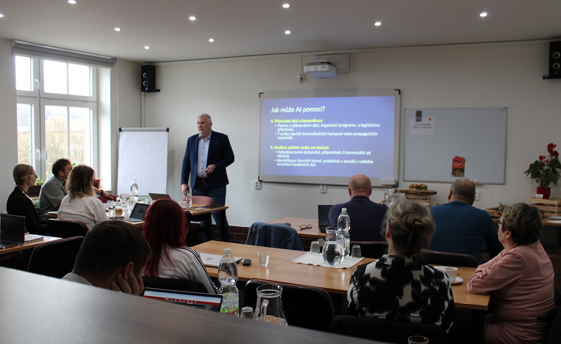 Celkem 16 zástupců místních samospráv pozdravil v úvodu ředitel MAS Jan Balcar, který mimo jiné informoval o rozjíždějícím se projektu „Rozvoj komunity v území MAS Království - Jestřebí hory, o.p.s.“. Pak už následovalo zajímavé školení o umělé inteligenci, které dalším městům a obcím v MAS zprostředkoval Pilníkov. Toto město vyhrálo Oranžovou stuhu v celostátním finále soutěže Vesnice roku a jedním z benefitů bylo, že mohlo do území přivést atraktivní prezentaci možností AI. Školení Jaromíra Poláška účastníkům přiblížilo nejen dynamický vývoj umělé inteligence, ale především její konkrétní přínosy pro práci starostů a obecních úřadů. Ve své prezentaci se lektor poutavým způsobem věnoval otázkám budoucnosti AI, možnostem jejího praktického využití při správě obcí i širší debatě o tom, zda může umělá inteligence v některých oblastech nahradit lidskou práci.