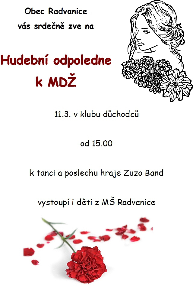 Obec Radvanice srdečně zve na Hudební odpoledne k MDŽ.