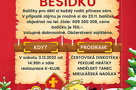 Adventní akce se budou konat na náměstí Karla Čapka v Malých Svatoňovicích. Teplé nápoje zajištěny.
