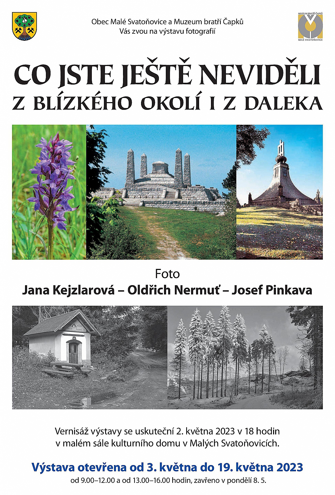 Obec Malé Svatoňovice a Muezum bratří Čapků Vás zvou na výstavu fotografií nazvanou "Co jste ještě neviděli z blízkého okolí i z daleka".