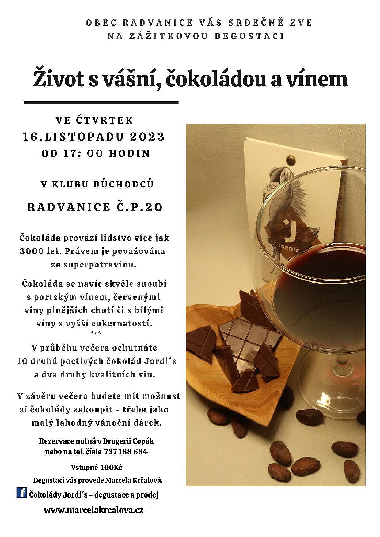 Akce se koná 16. 11. 2023 v Radvanicích, rezervace probíhá v Drogerii Copák.