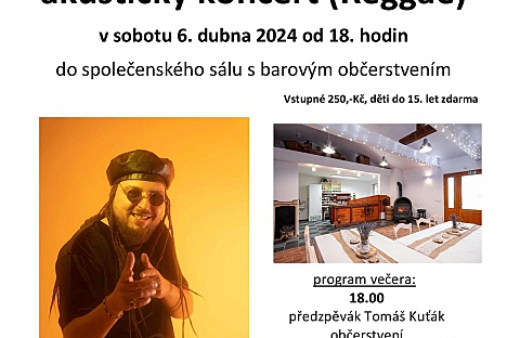 Pátek 15. 3. 2024 od 18 hodin. Vstupné jednotné 80 Kč.