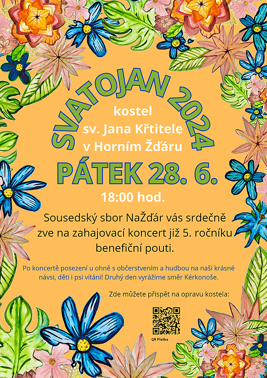 Jako každý rok se sousedský sbor NaŽďár vydá začátkem července na benefiční svatojánskou pouť po Čechách. Letos je v plánu projít Trutnovsko směrem na Krkonoše. Pouť se zahájí koncertem v kostele sv. Jana Křtitele v Horním Žďáru.