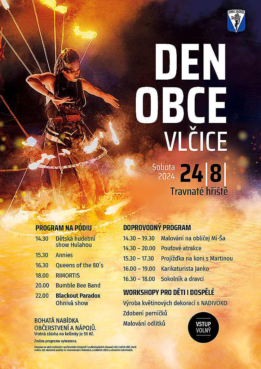 Zapište si do kalendáře důležité datum 24. 8. 2024 - ve Vlčicích bude v tento den připraven pestrý celodenní program.