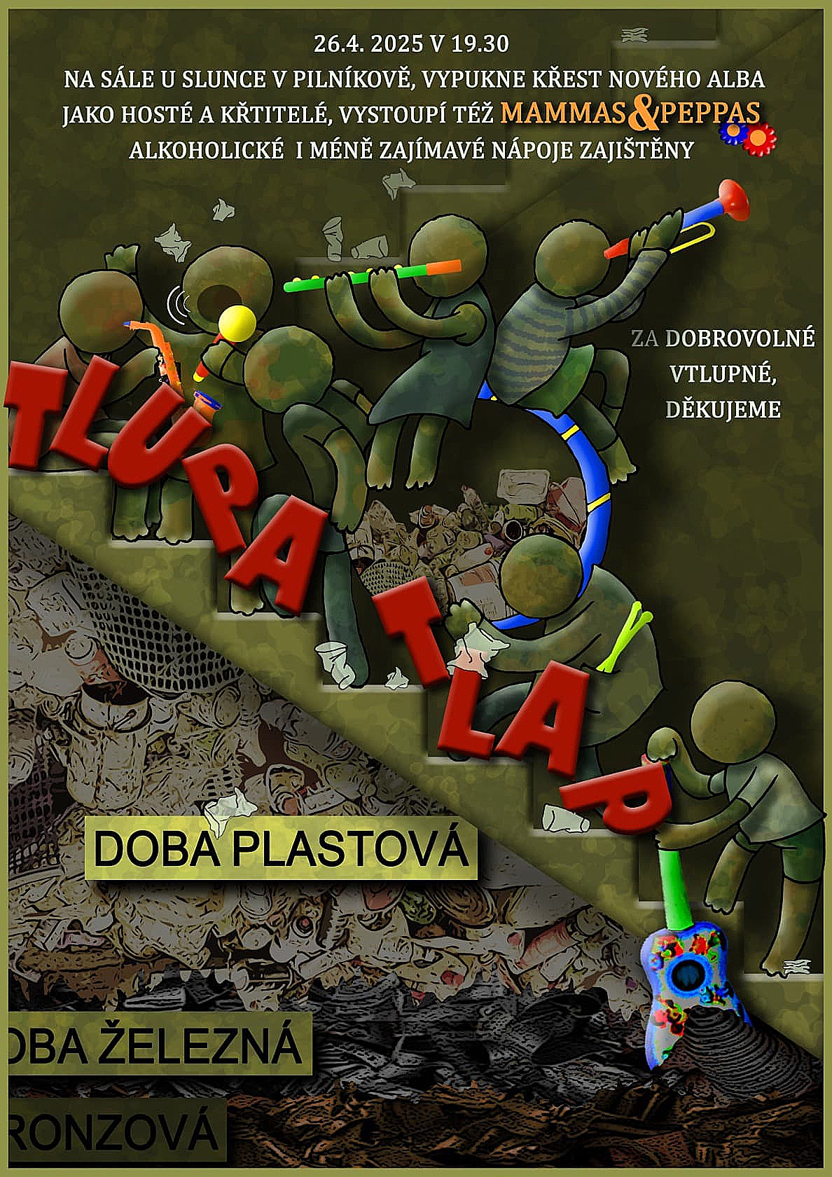 Zveme vás na křest nového alba skupiny Tlupa Tlap, který proběhne 26. dubna 2025 od půl osmé na sále restaurace U slunce v Pilníkově.