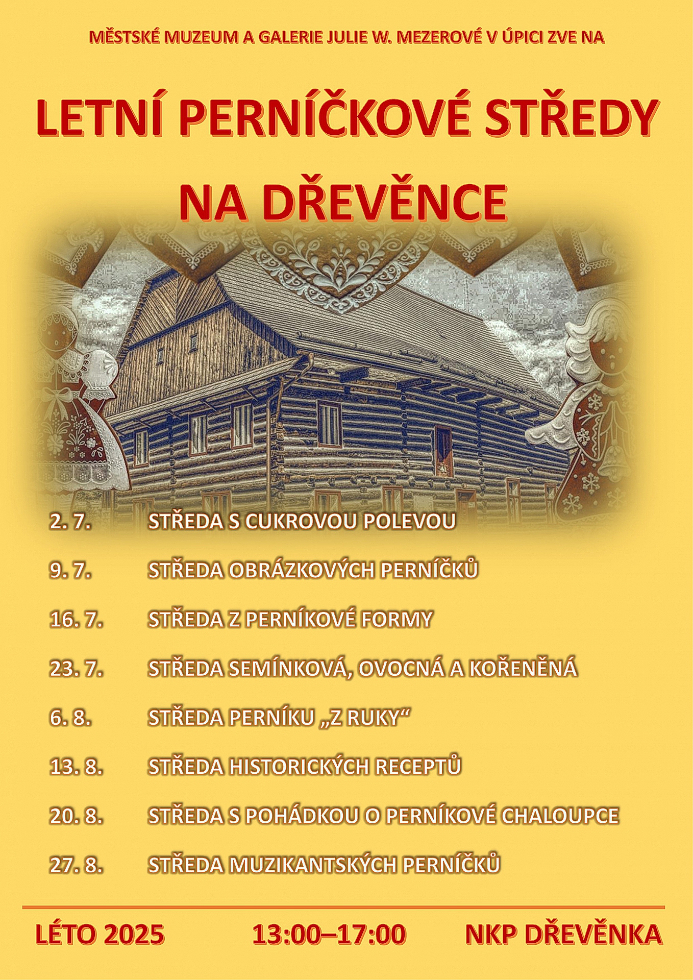 Každou letní středu voní Dřevěnka perníkem – přijďte si užít voňavé, tvořivé a pohodové odpoledne pro malé i velké.