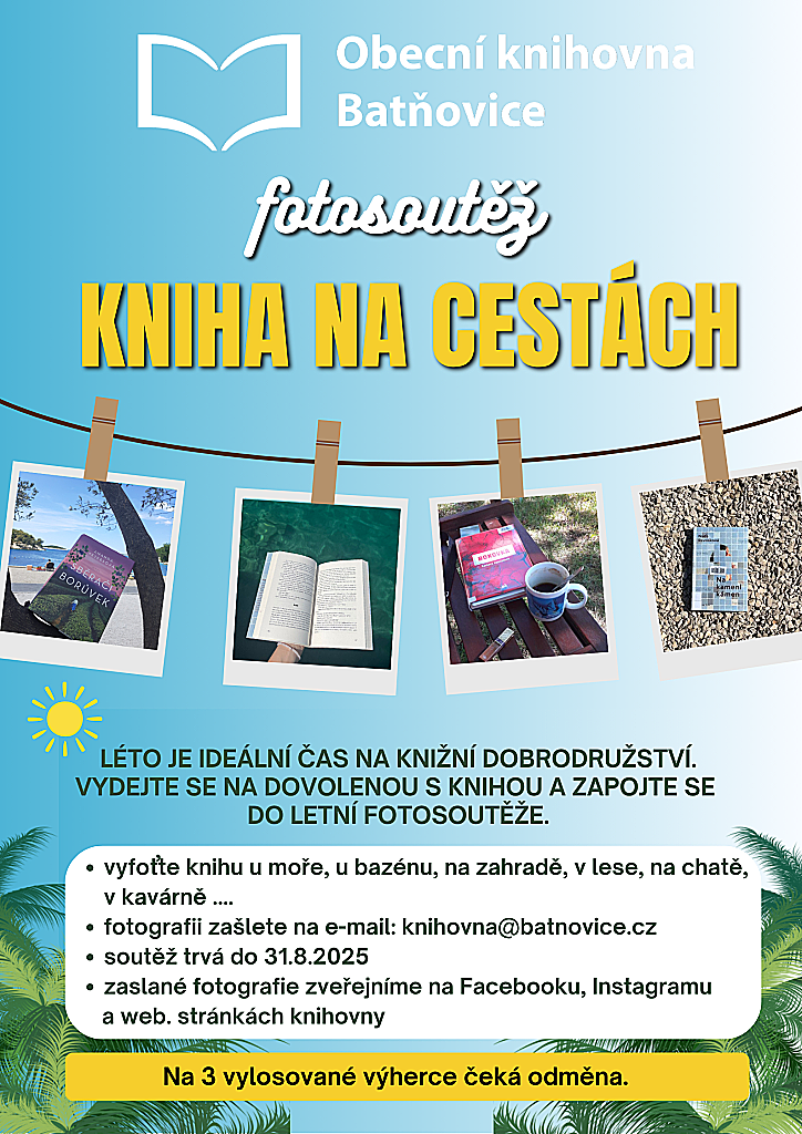 Obecní knihovna Batňovice připomíná, že ještě tento týden můžete posílat své příspěvky do letní fotosoutěže Kniha na cestách!