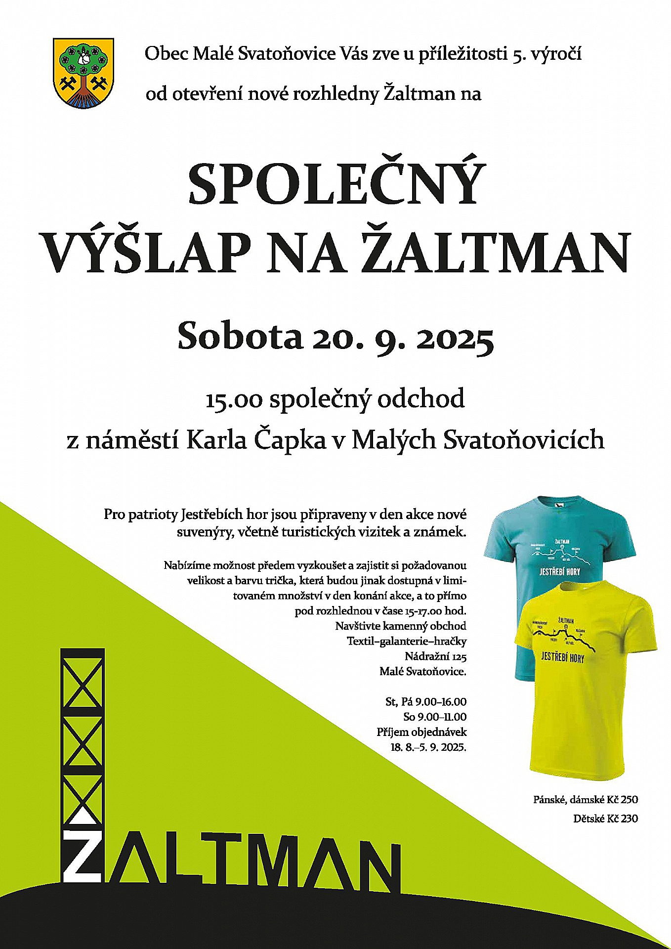 Zveme všechny milovníky turistiky, přírody a krásných výhledů na společný výšlap na Žaltman, kde si připomeneme pět let od otevření rozhledny!