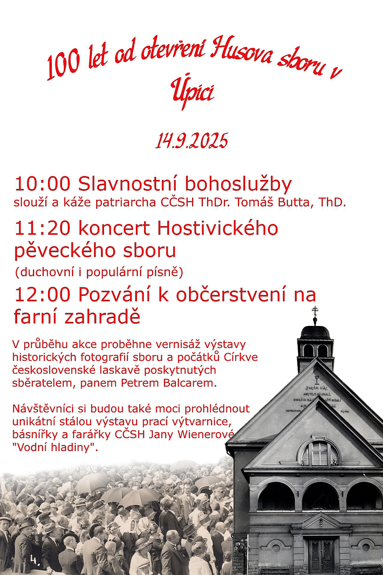 Letos si připomínáme významné jubileum – 100 let od založení Husova sboru v Úpici. Tento sbor se za celé století stal nejen duchovním místem, ale i důležitým kulturním a společenským centrem města.