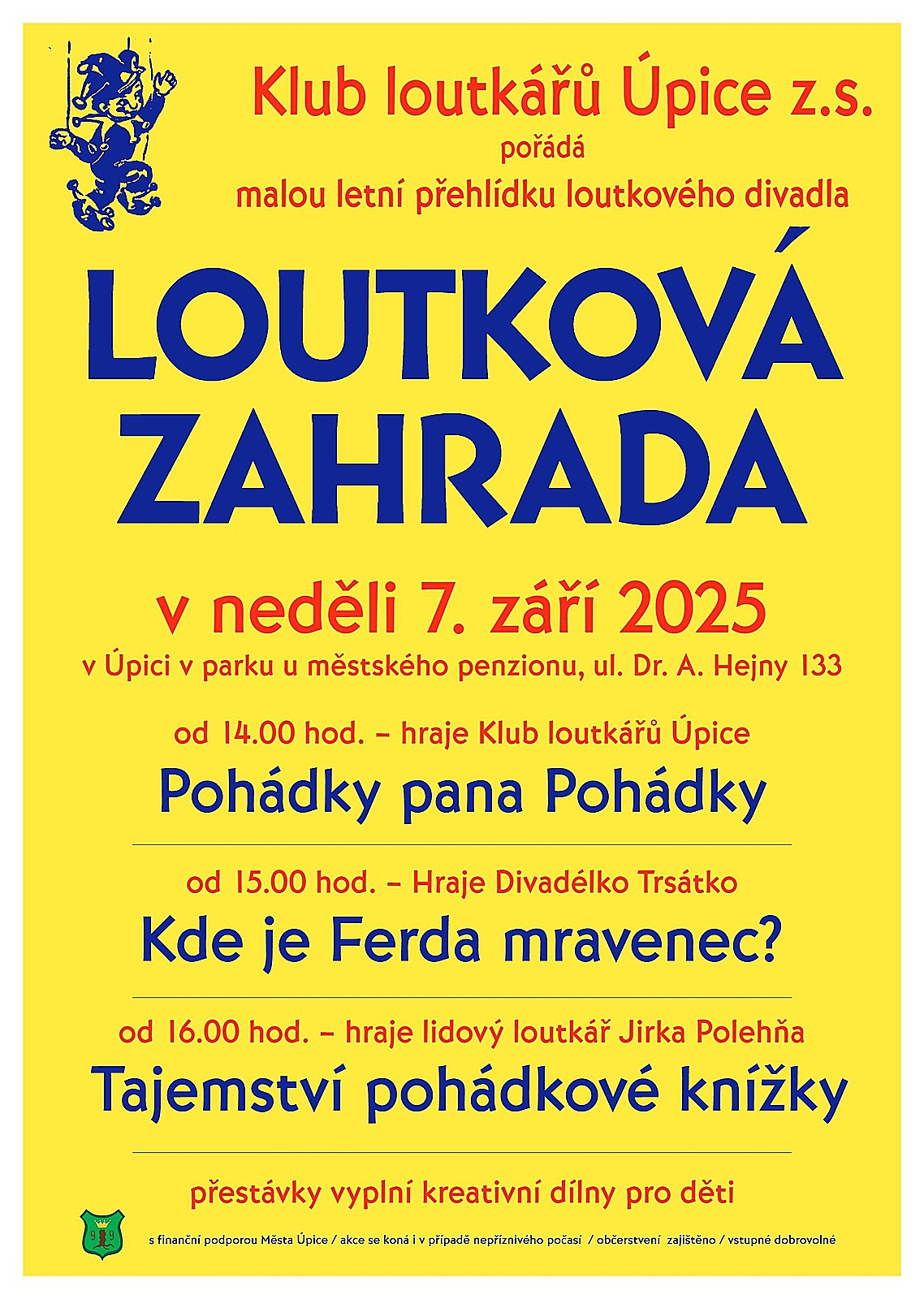 Přijďte si užít kouzelný den plný pohádek, her a loutek do parku u městského penzionu v Úpici.