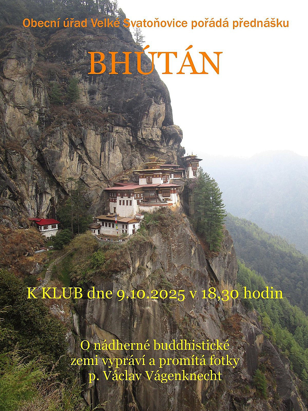 Pan Václav Vágenknecht vás prostřednictvím svých osobních zážitků a autentických fotografií provede Bhútánem – královstvím, které si dodnes zachovává jedinečný ráz i ducha.