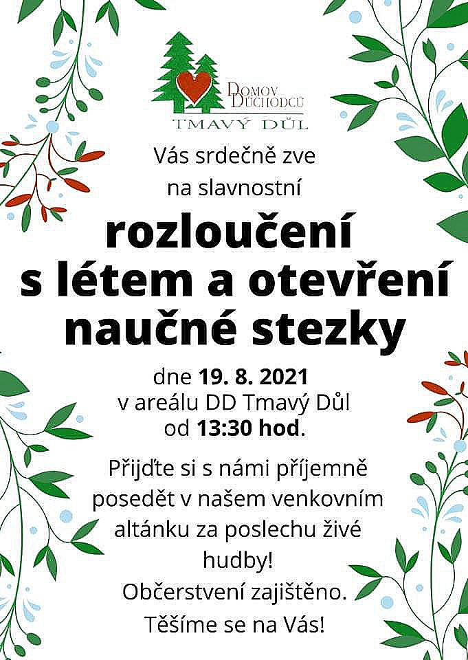 Domov důchodců Tmavý důl Vás srdečně zve na slavnostní rozloučení s létem a otevření naučné stezky dne 18. srpna 2021 od 13:30.