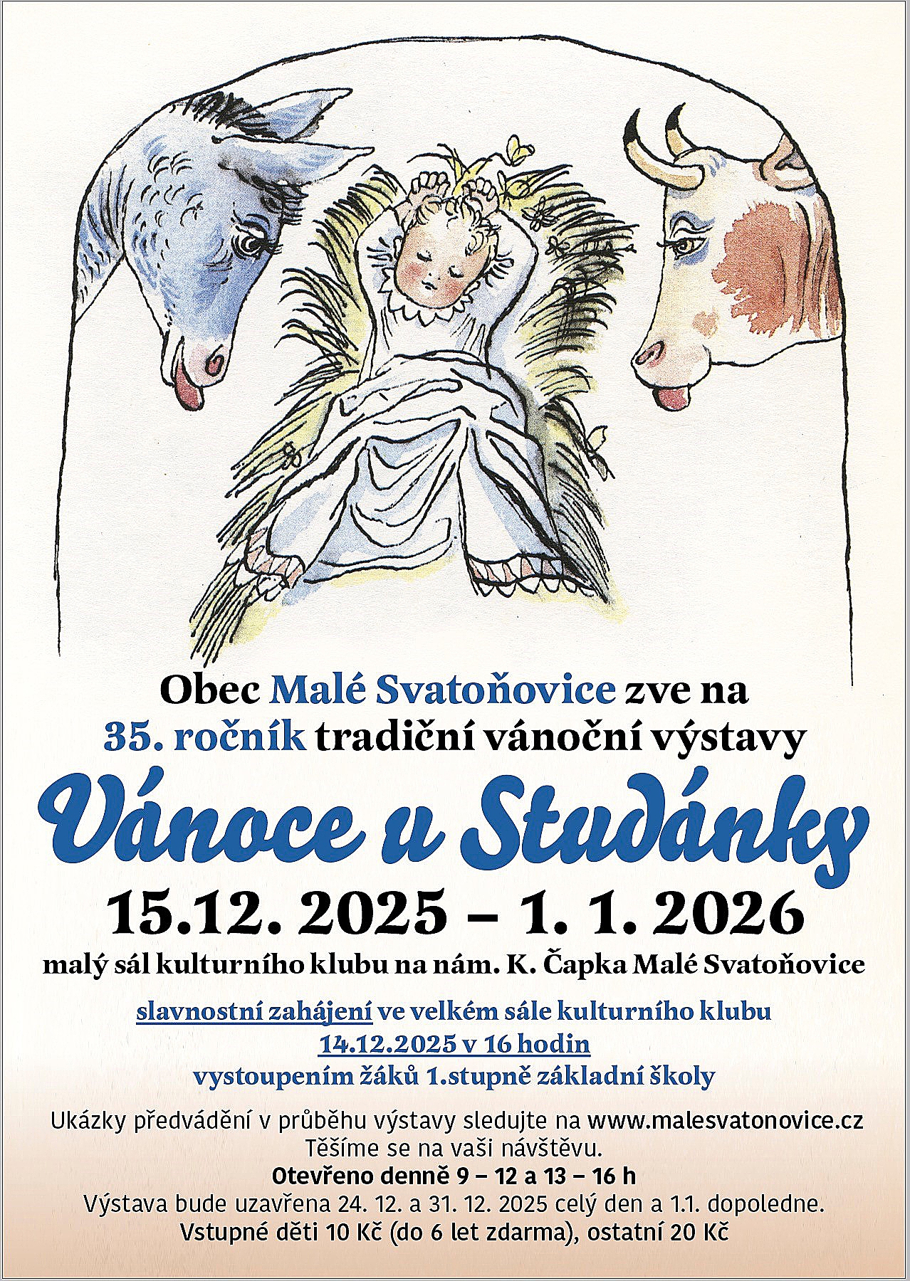 V malém sále kulturního klubu od 15. 12. 2025 do 1. 1. 2026.