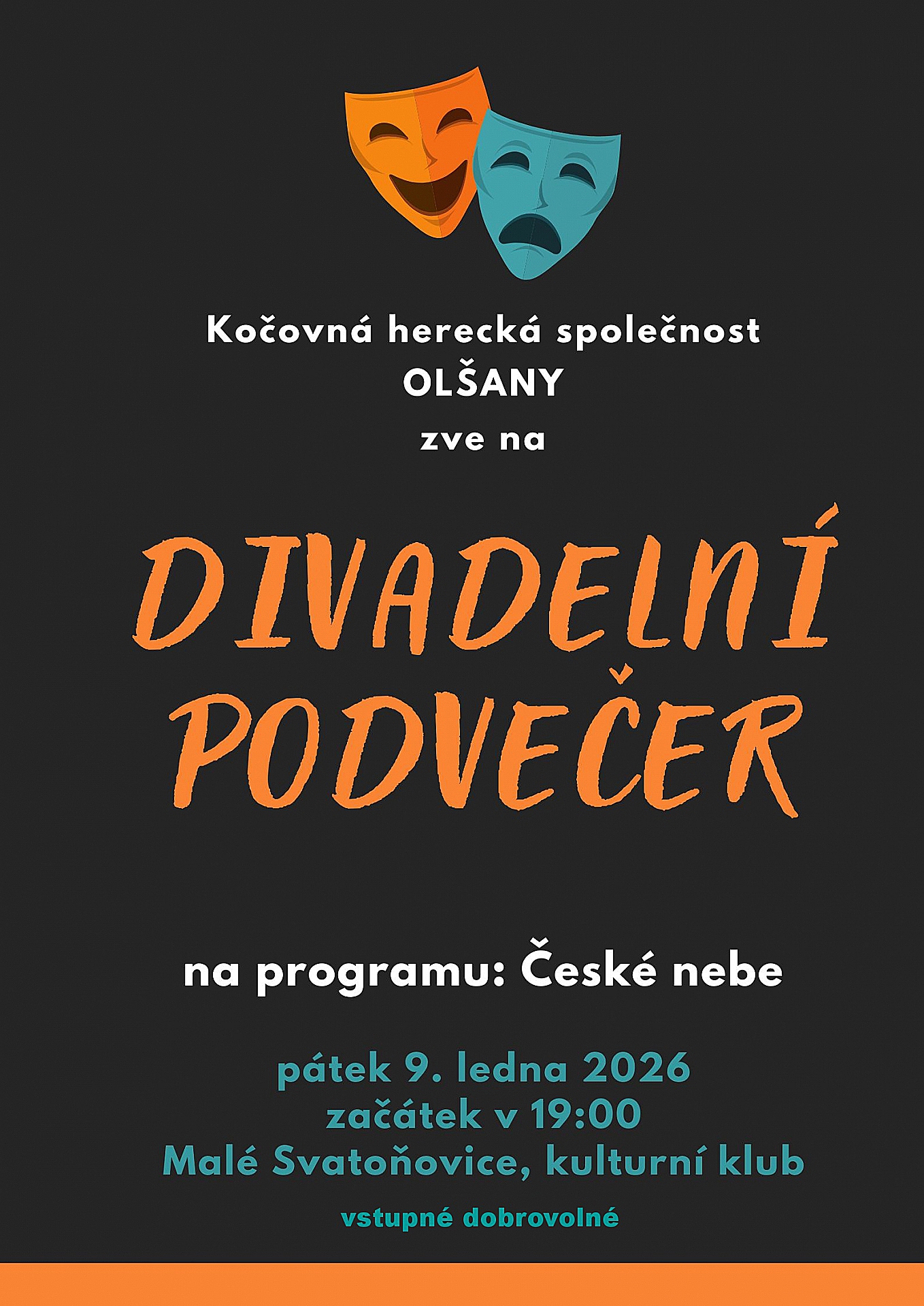 Přijďte v pátek 9. ledna 2026 od 19:00 do Kulturního klubu Malé Svatoňovice.