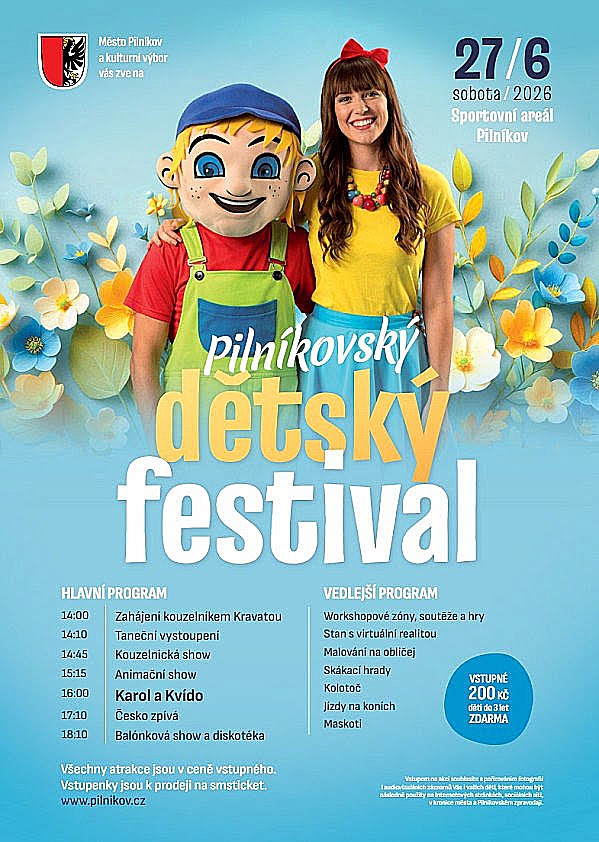 Město Pilníkov vás srdečně zve na Pilníkovský dětský festival, který se uskuteční v sobotu 27. června 2026 ve sportovním areálu v Pilníkově.