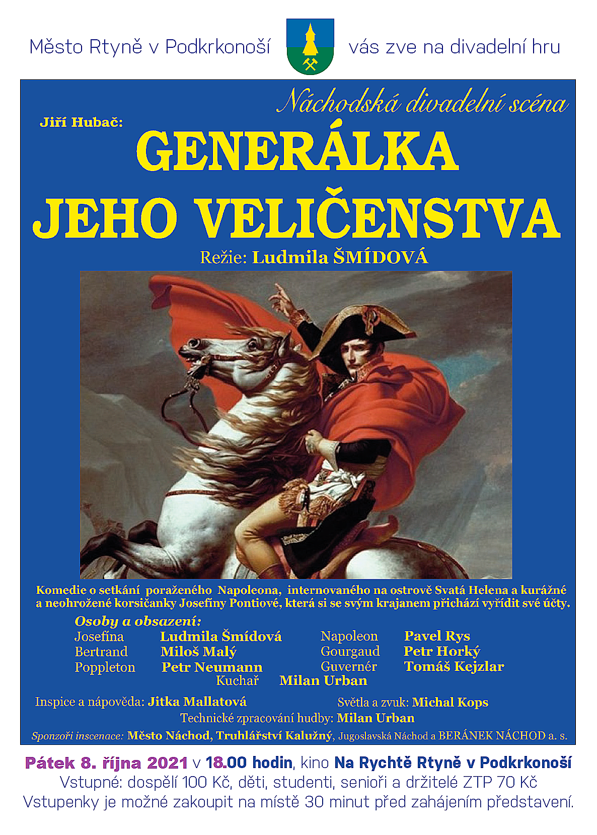 Již nyní se můžete těšit na komedii o Napoleonovi. A kdy a kde že se toto představení bude konat? V pátek 8. října 2021 v kině Na Rychtě ve Rtyni v Podkrkonoší.