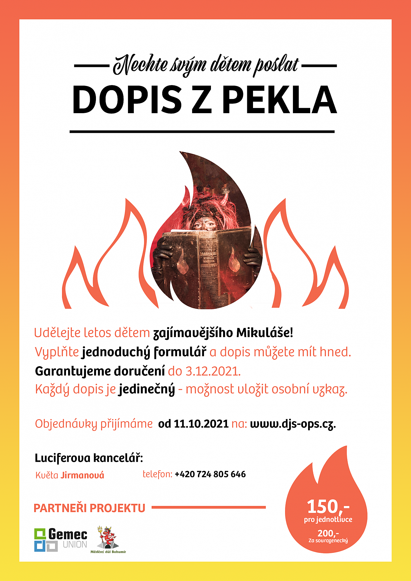 Letos máte jedinečnou možnost udělat dětem nevšedního Mikuláše. Nechte svým ratolestem poslat dopis z pekla, stačí vyplnit jednoduchý formulář. Garantováno je doručení dopisu do 3.12.2021.