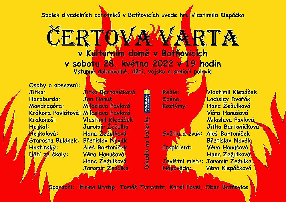 Spolek divadelních ochotníků v Batňovicích uvede hru ČERTOVA VARTA