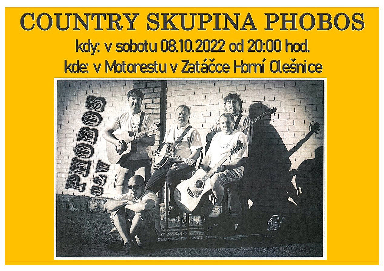 V sobotu 8. 10. 2022 od 20:00 hodin zahraje v Horní Olešnici známá královédvorská country skupina PHOBOS.