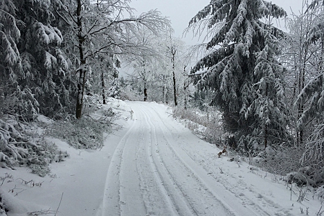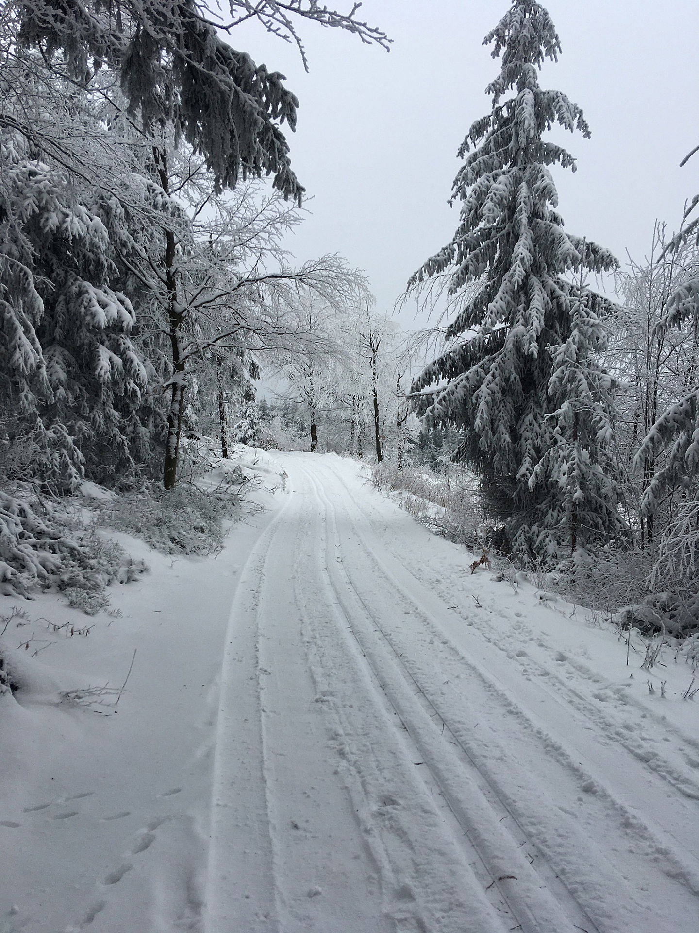 Podařilo se nám trochu upravit Panskou cestu k Bílému Kolu, pak jsme zařízli stopu k Jestřebí boudě, vyjeli kolečka na loukách a projeli úsek ke křížku nad Radvanice. Pěkné svezení.