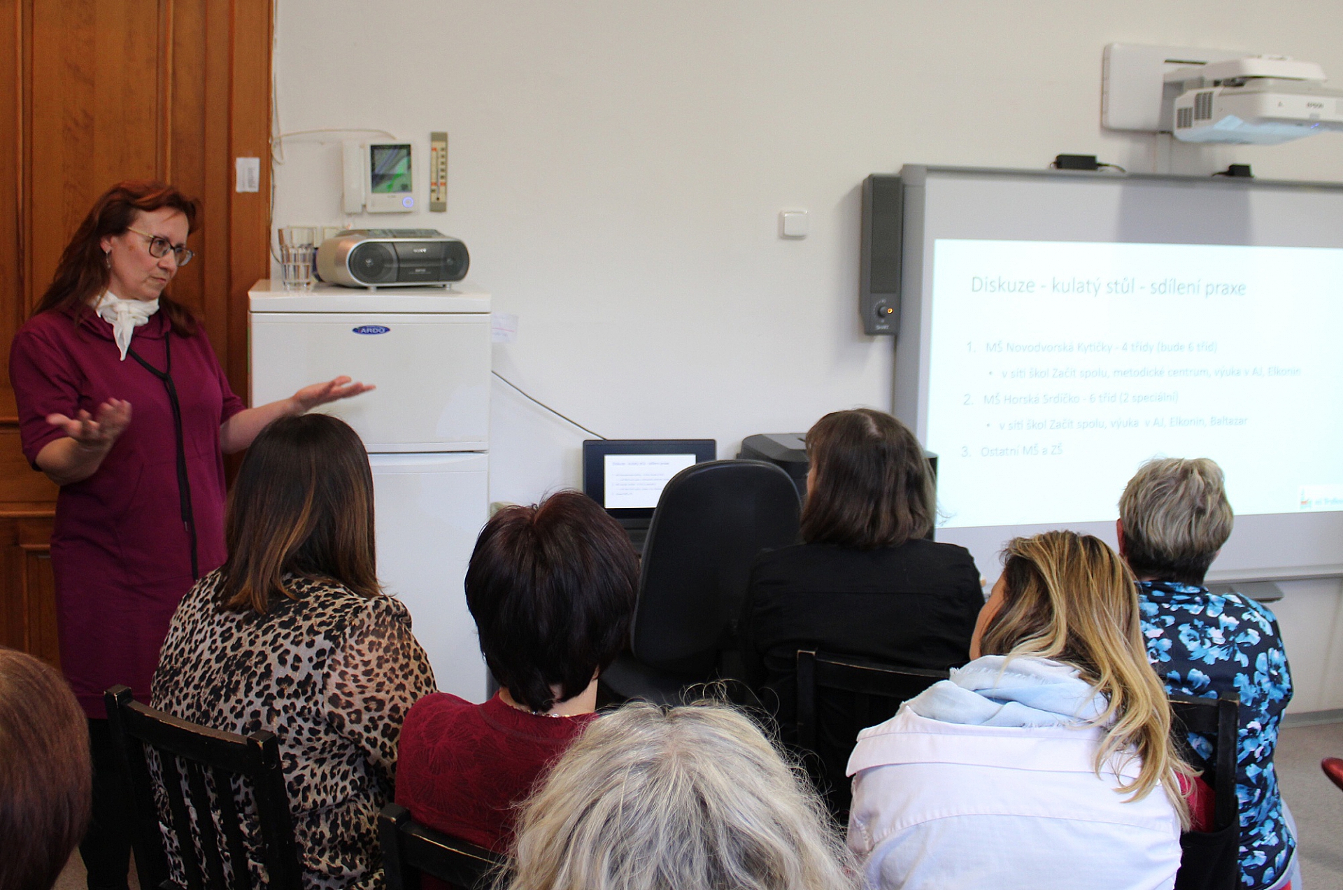 Hovořilo se například o programu Začít spolu nebo o novinkách vyplývajících z revize rámcových vzdělávacích programů. Setkání moderovala ředitelka MŠ Trutnov Vladimíra Priputenová, společně s ní zajistily úvodní část diskuse Dagmar Kážová, Radka Viková a Lenka Müllerová. Všem patří velké poděkování!
