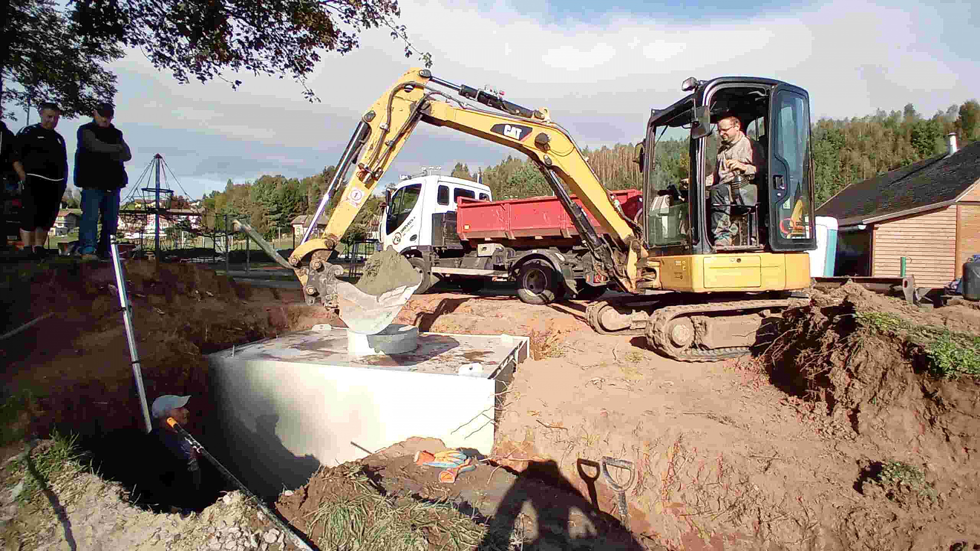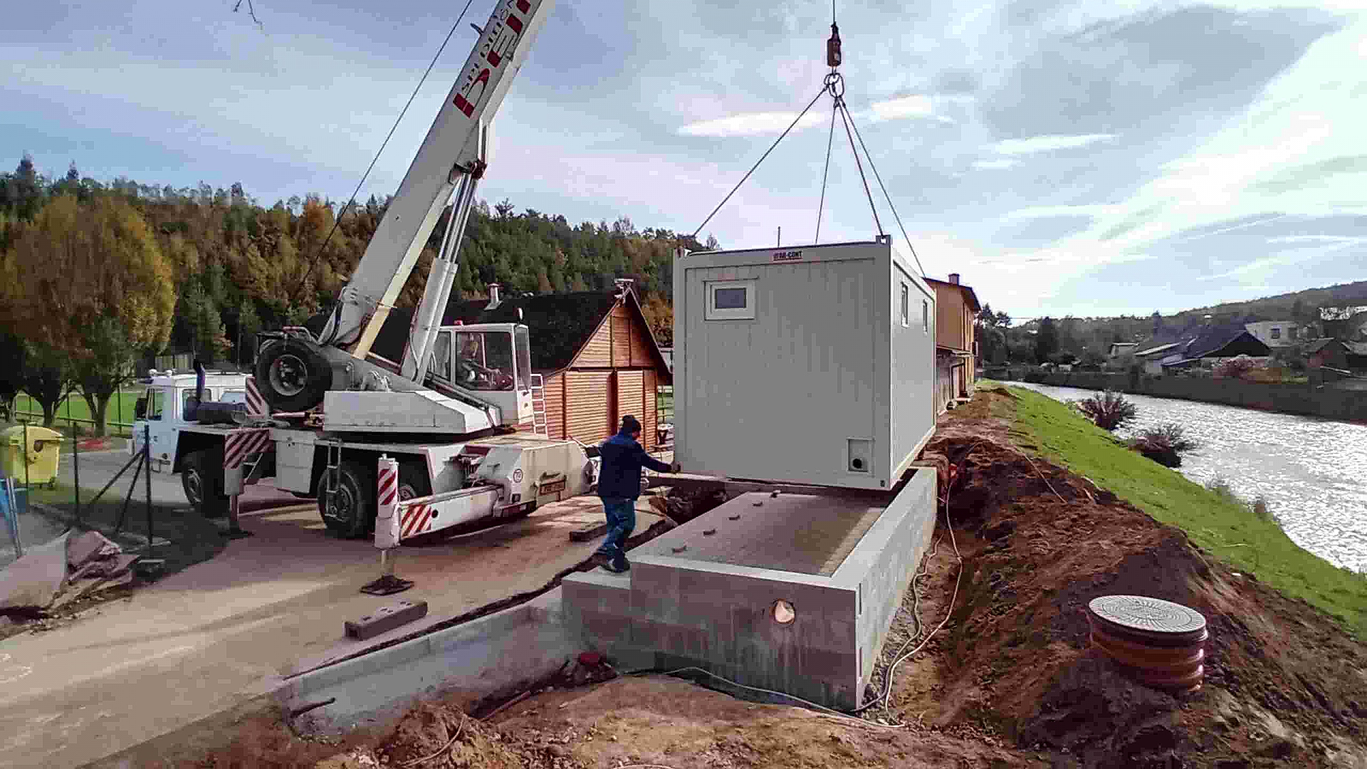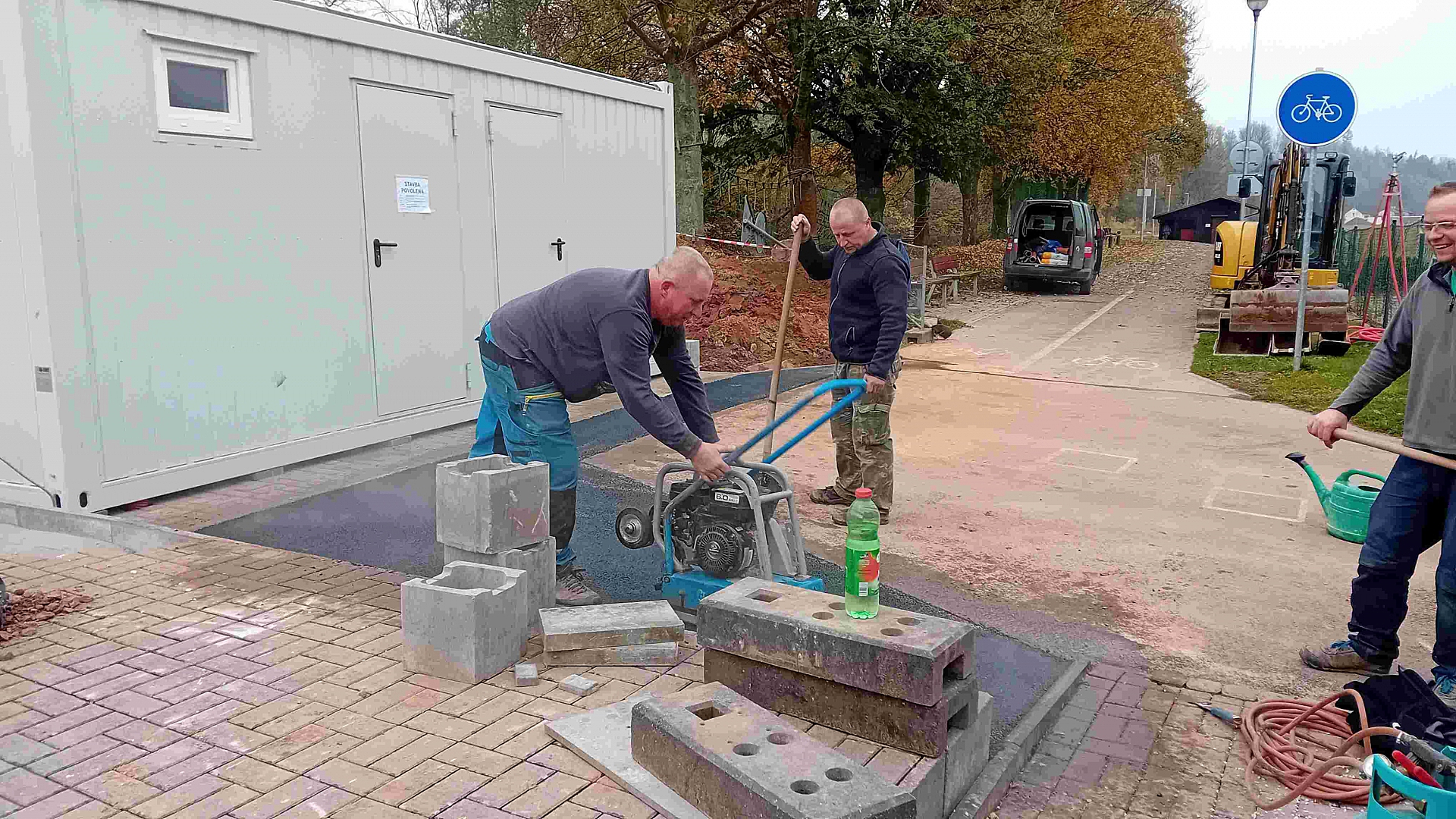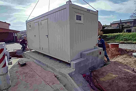 Během října byl usazen septik, čistička a zpětná klapka do prostoru za prodejním stánkem ve sportovním areálu. Pracovníci zhotovili podklad ze zámkové dlažby, usadili kontejner s WC a napojili jej na elektřinu, vodu a odpad. Upravili prostor před a za kontejnerem. V nejbližší době budou usazeny nástavce na odpadní nádoby a vše bude zasypáno a upraveno. Během listopadu bude celý kontejner obložen palubkami, aby byl designově stejný jako prodejní stánek. Už se těšíme, až bude hotovo a WC otevřeme veřejnosti.