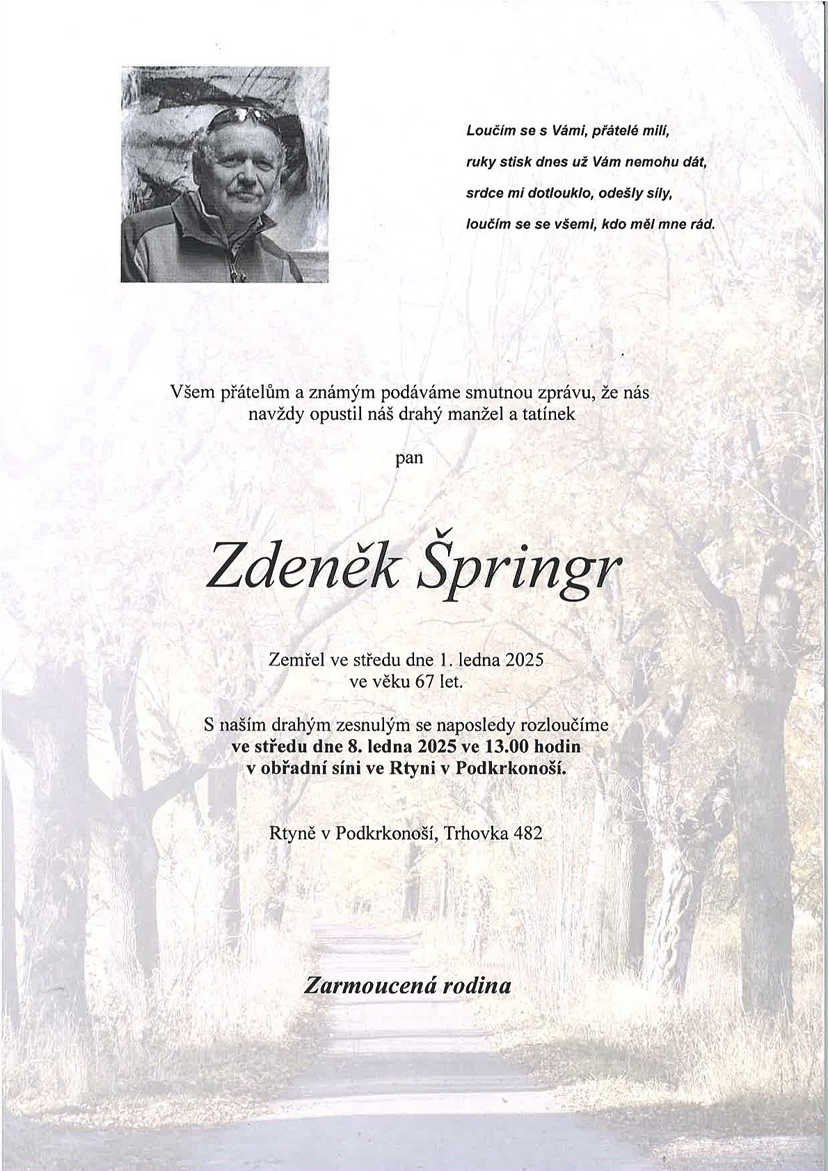 Hned na Nový rok nás bohužel zasáhla hodně smutná zpráva. Ve věku 67 let zemřel Zdeněk Špringr.