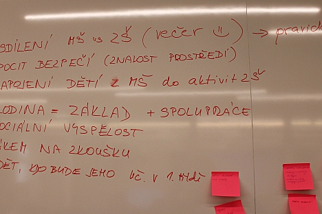 V druhé části setkání se 38 účastnic rozdělilo do několika skupin, v nichž sumarizovaly své osvědčené postupy a také diskutovaly o tom, co potřebuje dítě pro snadnější a plynulejší přechod na základní školu. Při následném společném vyhodnocení například zaznělo, že je dobré pořádat informační schůzky rodičů s účastí zástupců MŠ i ZŠ. Zklidní se tím obavy ze zápisu a sjednotí očekávání. „Je důležité, abychom se jako pedagogové napříč školami navzájem inspirovali a diskutovali o tom, co funguje a kde naopak vidíme prostor ke zlepšení,“ uvedla jedna z účastnic. Podobné názory zaznívaly během celého setkání, které bylo velmi přínosné a podnětné.