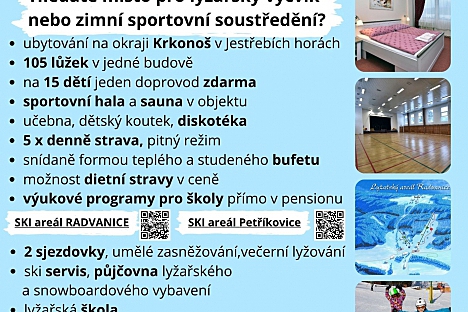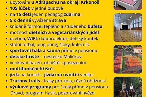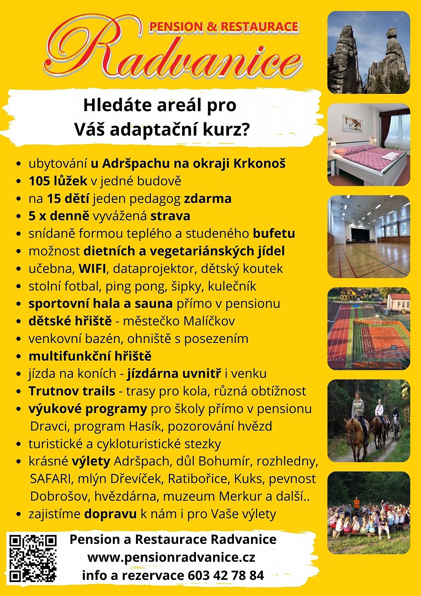 Převážná část programu bude probíhat v Pensionu Radvanice, který má školám rozhodně co nabídnout – bližší informace jsou na přiložených prospektech.