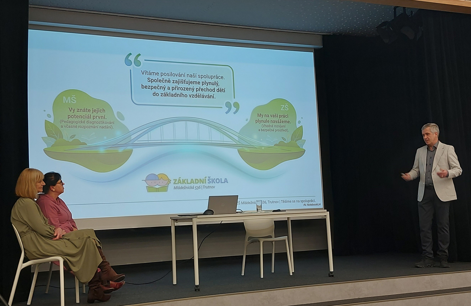 V rámci projektu Místní akční plán Trutnovsko V se uskutečnilo zajímavé setkání sedmadvaceti pedagogů z mateřských a základních škol. V moderních prostorách ZŠ Trutnov, Mládežnická se v pondělí 30. března 2026 hovořilo zejména o práci s nadanými dětmi a možnostech, jak jejich potenciál rozpoznat a dále rozvíjet už od předškolního věku. Setkání nabídlo prostor pro sdílení zkušeností, konkrétních postupů z praxe i diskusi nad tím, jak mohou školy a školky v této oblasti více spolupracovat.
