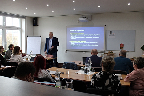 Celkem 16 zástupců místních samospráv pozdravil v úvodu ředitel MAS Jan Balcar, který mimo jiné informoval o rozjíždějícím se projektu „Rozvoj komunity v území MAS Království - Jestřebí hory, o.p.s.“. Pak už následovalo zajímavé školení o umělé inteligenci, které dalším městům a obcím v MAS zprostředkoval Pilníkov. Toto město vyhrálo Oranžovou stuhu v celostátním finále soutěže Vesnice roku a jedním z benefitů bylo, že mohlo do území přivést atraktivní prezentaci možností AI. Školení Jaromíra Poláška účastníkům přiblížilo nejen dynamický vývoj umělé inteligence, ale především její konkrétní přínosy pro práci starostů a obecních úřadů. Ve své prezentaci se lektor poutavým způsobem věnoval otázkám budoucnosti AI, možnostem jejího praktického využití při správě obcí i širší debatě o tom, zda může umělá inteligence v některých oblastech nahradit lidskou práci.