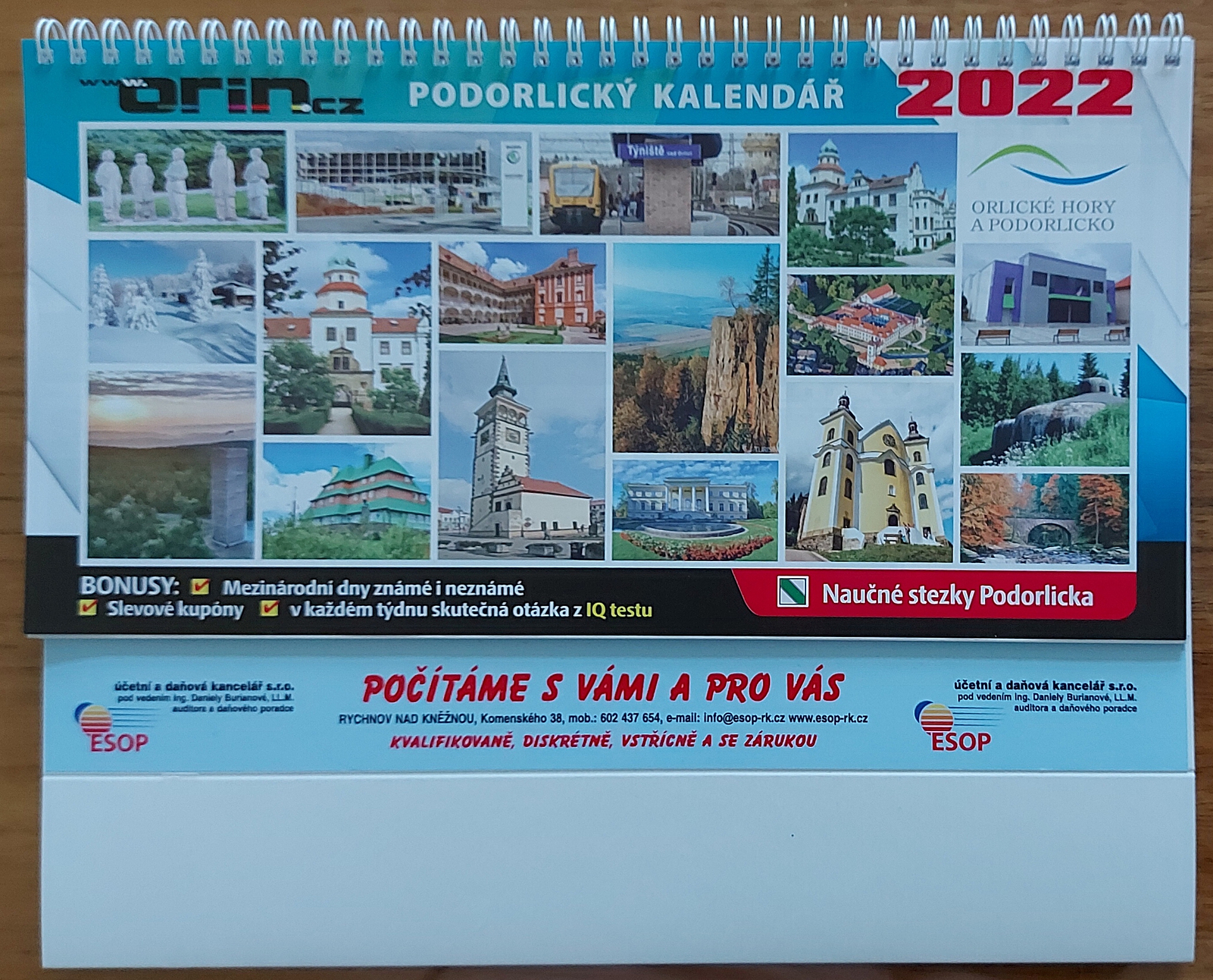 Ještě nemáte stolní kalendář na rok 2022? Žádný problém! Zastavte se v kanceláři Místní akční skupiny Království - Jestřebí hory, o.p.s. v Úpici a my vám kalendář dáme zadarmo.