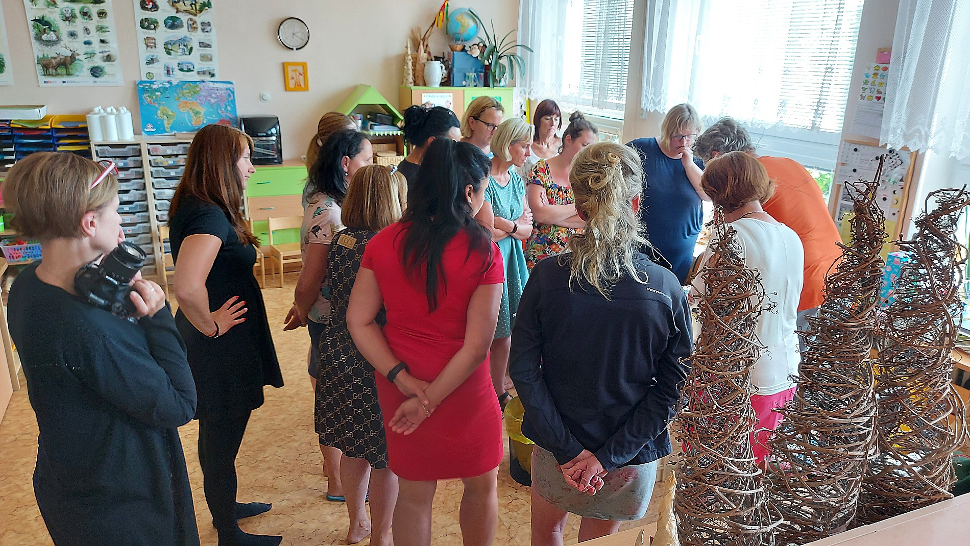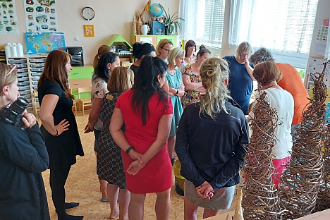 Mateřská škola Novodvorská v Trutnově hostila tento týden dvě setkání učitelek z MŠ. Workshopy jsme uspořádali ve dvou termínech kvůli velkému zájmu pedagožek. V úterý 14. června se sešly učitelky z trutnovských MŠ, o dva dny později došlo i na mimotrutnovské zájemkyně. Obou setkání se celkem zúčastnilo skoro padesát učitelek, které si mohly "osahat" moderní pomůcky potřebné k výuce informatiky. Akce se konala v rámci projektu na podporu vzdělávání Místní akční plán (MAP) Trutnovsko II. Účastnice workshopů s problematikou seznámilo sehrané duo lektorů Václav Fišer - Zdeněk Heteš ze společnosti Edutime. Oba také působí v rámci MAP v pracovní skupině pro rozvoj matematické gramotnosti, Václav Fišer je vedoucím této skupiny.